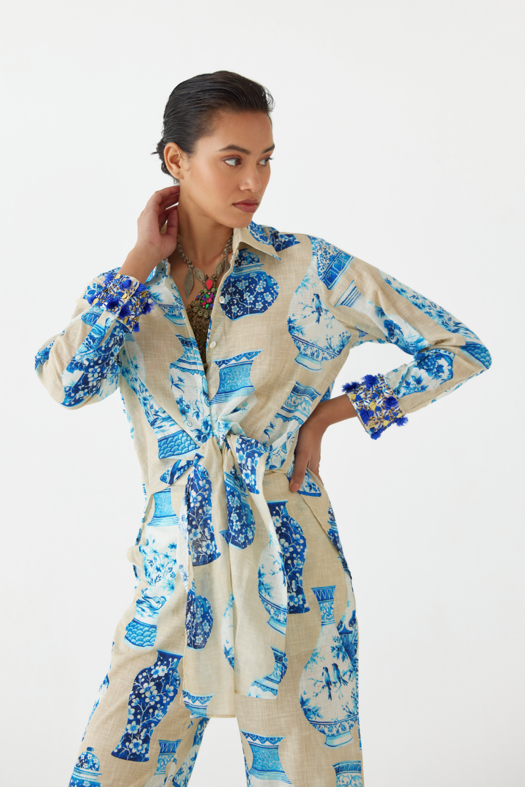 Monet Knot Shirt & Draped Skirt