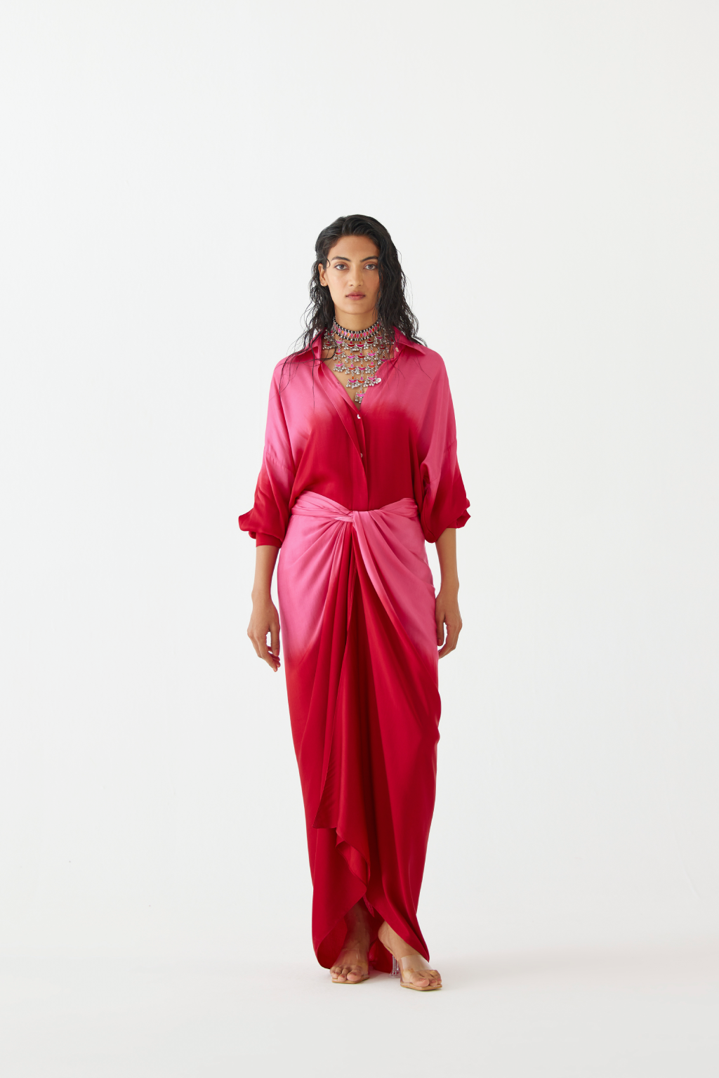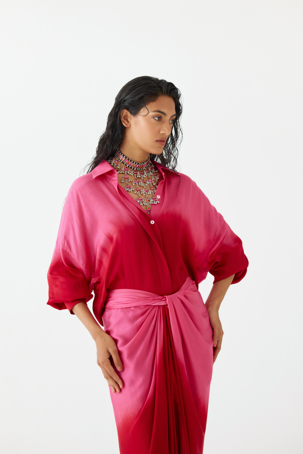 Caspian Blouse & Ombre Draped Skirt
