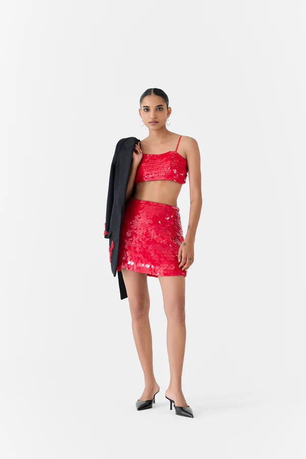 RUBY SEQUIN BUSTIER & SKIRT CO-ORD