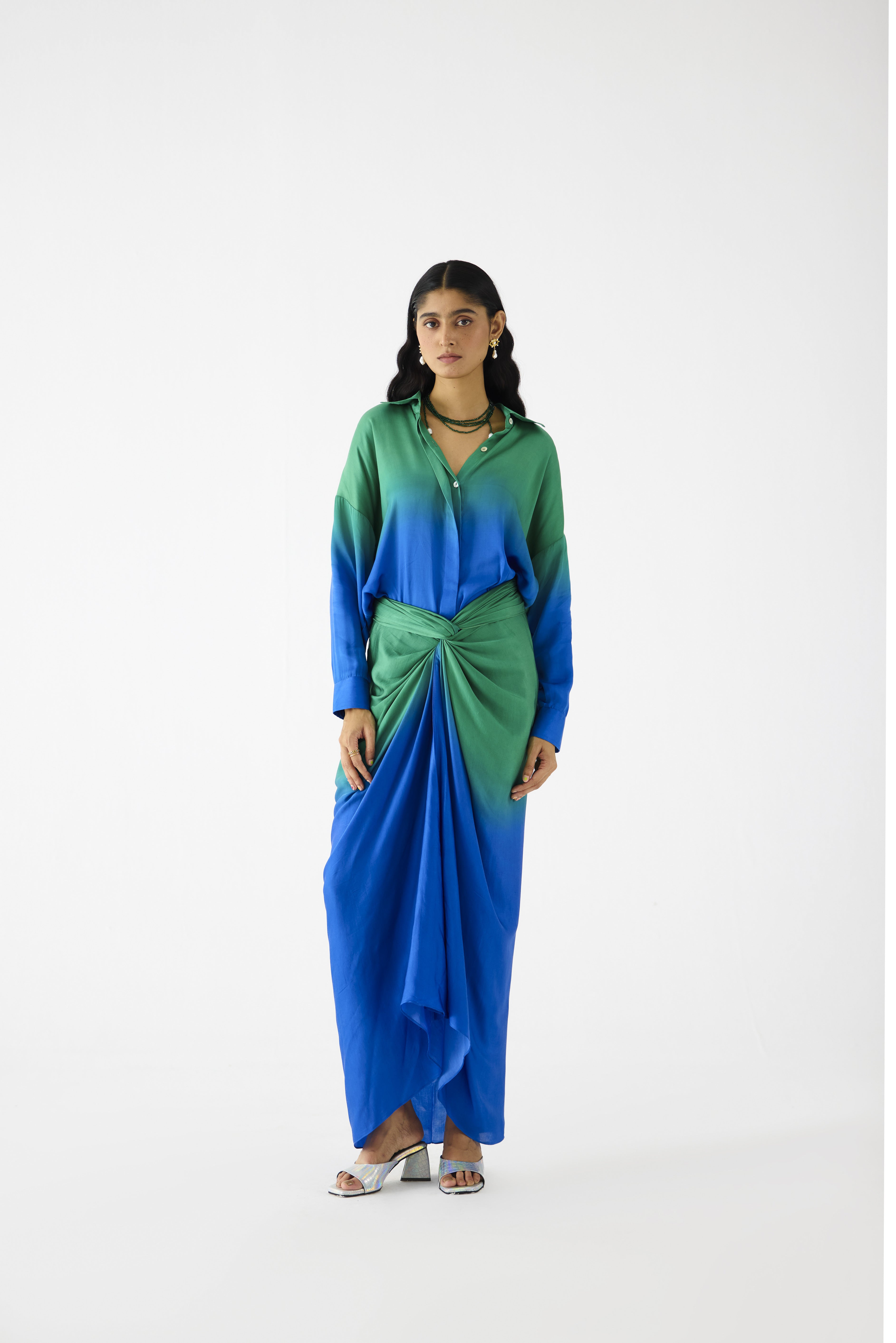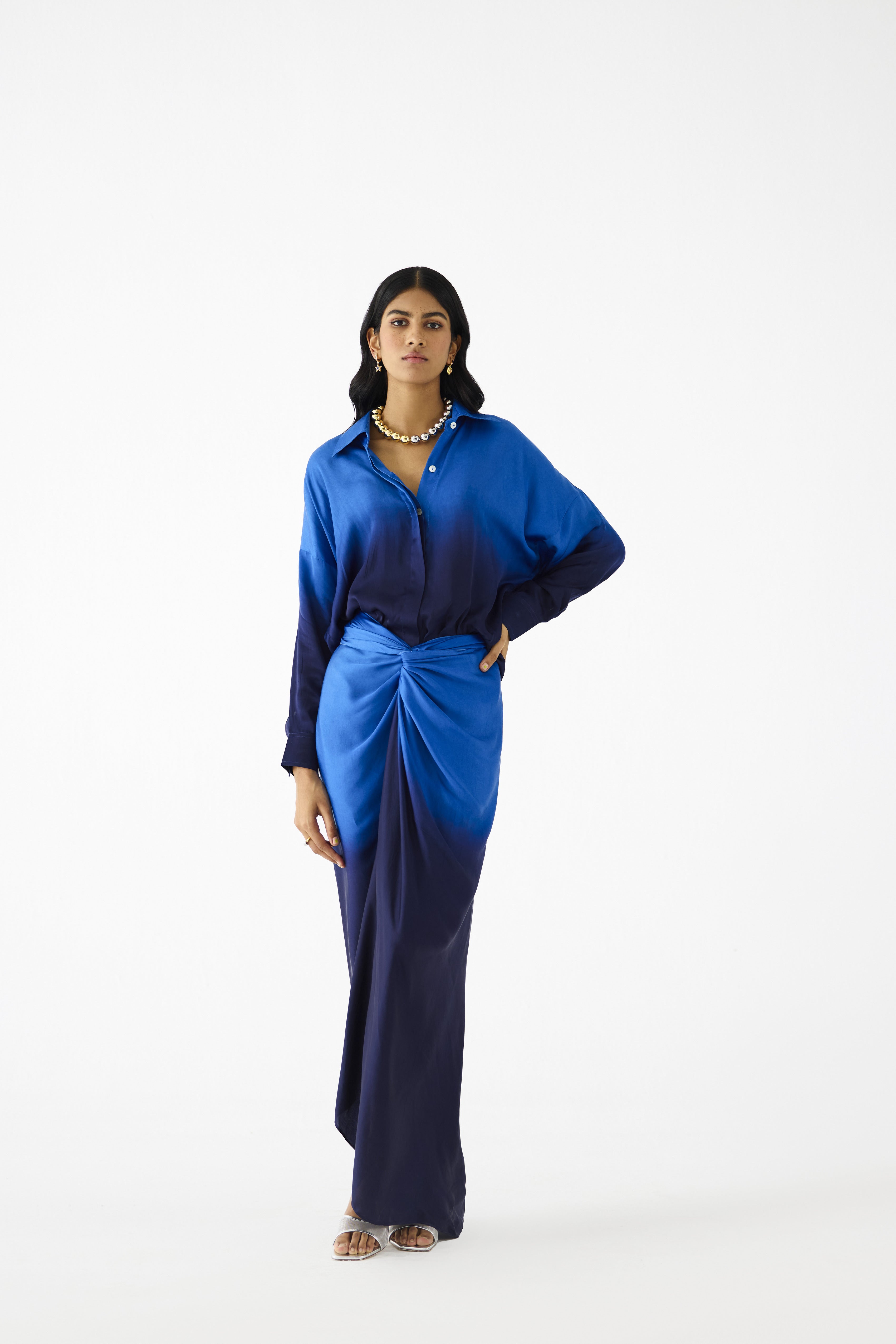 ROYAL SEQUIN BLOUSE WITH KNOT SKIRT