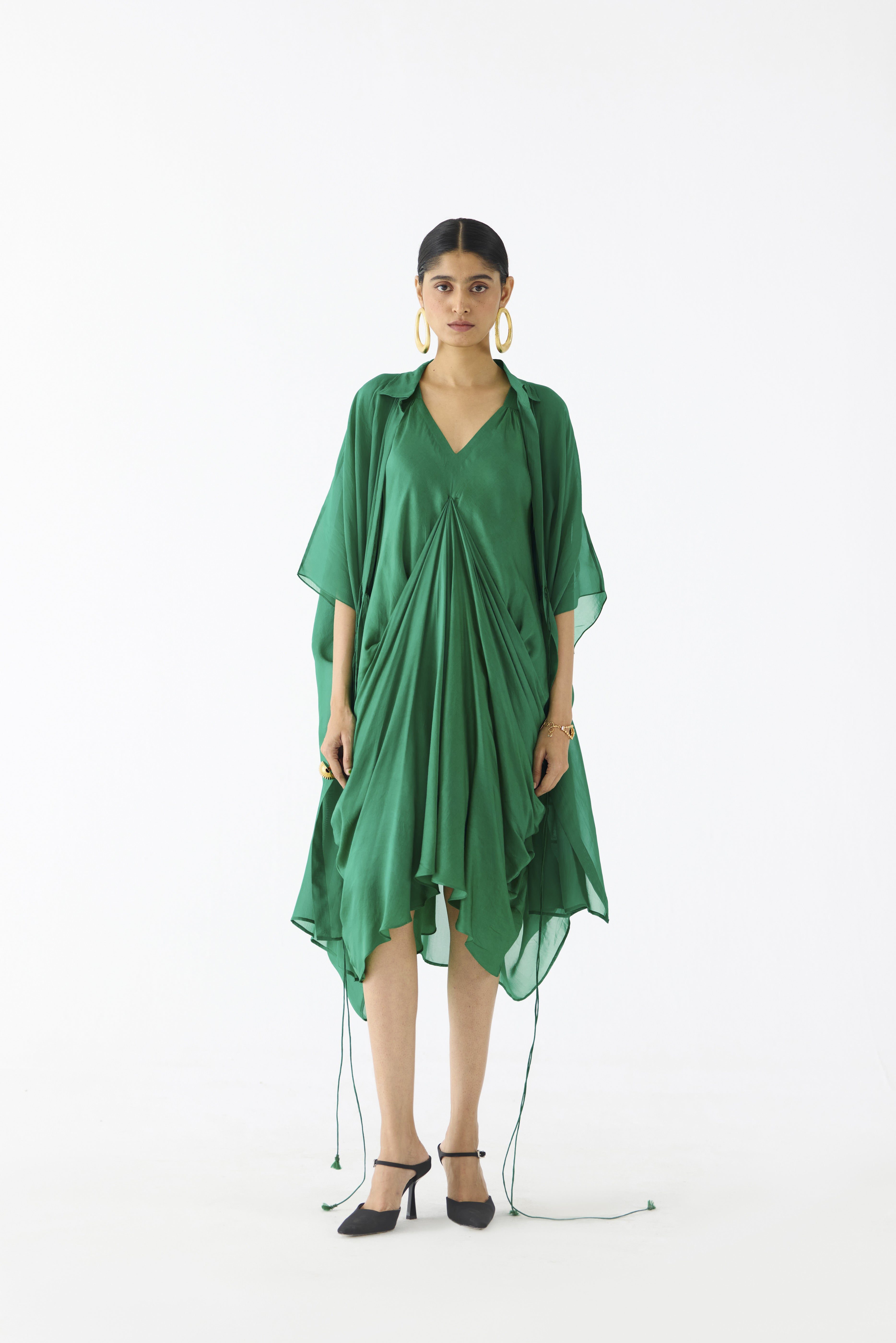 EMERALD MIDI DRESS WITH ORGANZA CAPE