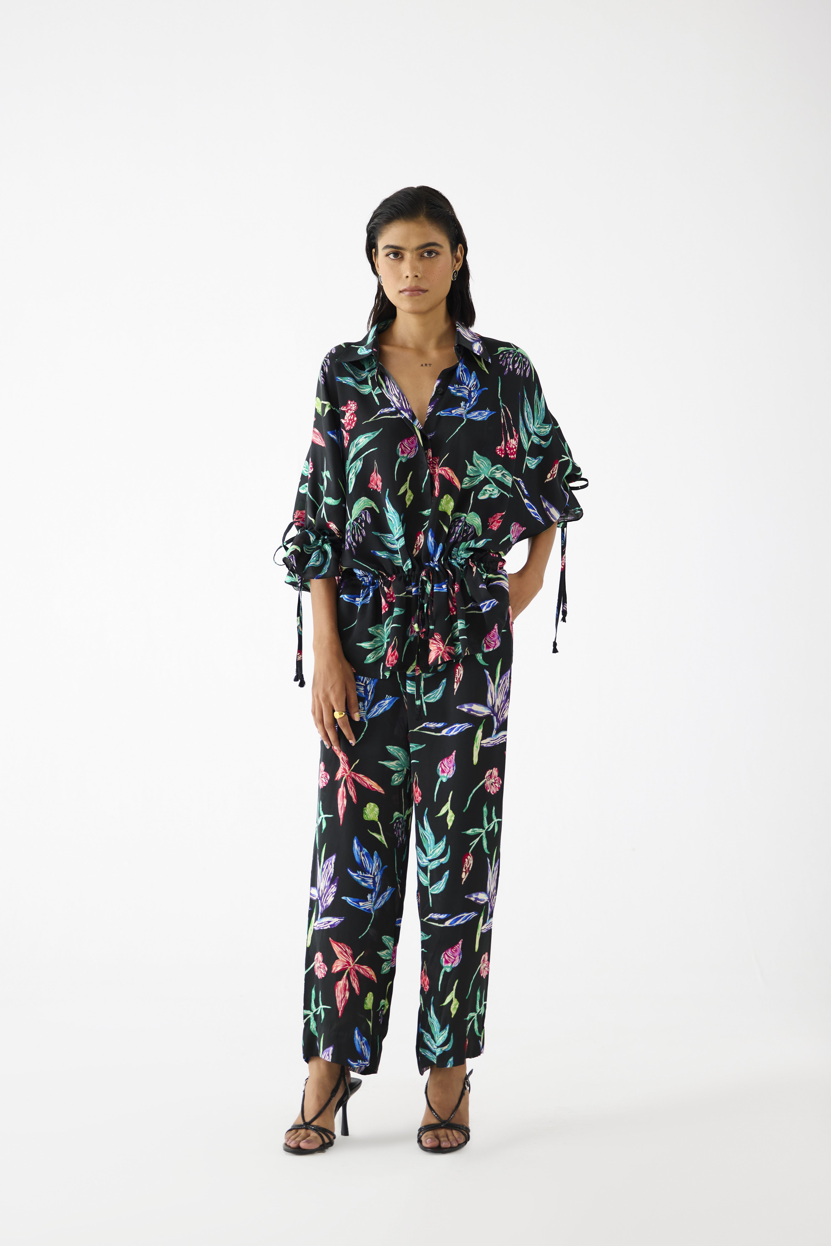 BLACK BOTANICA DRAWSTRING SHIRT AND PANTS