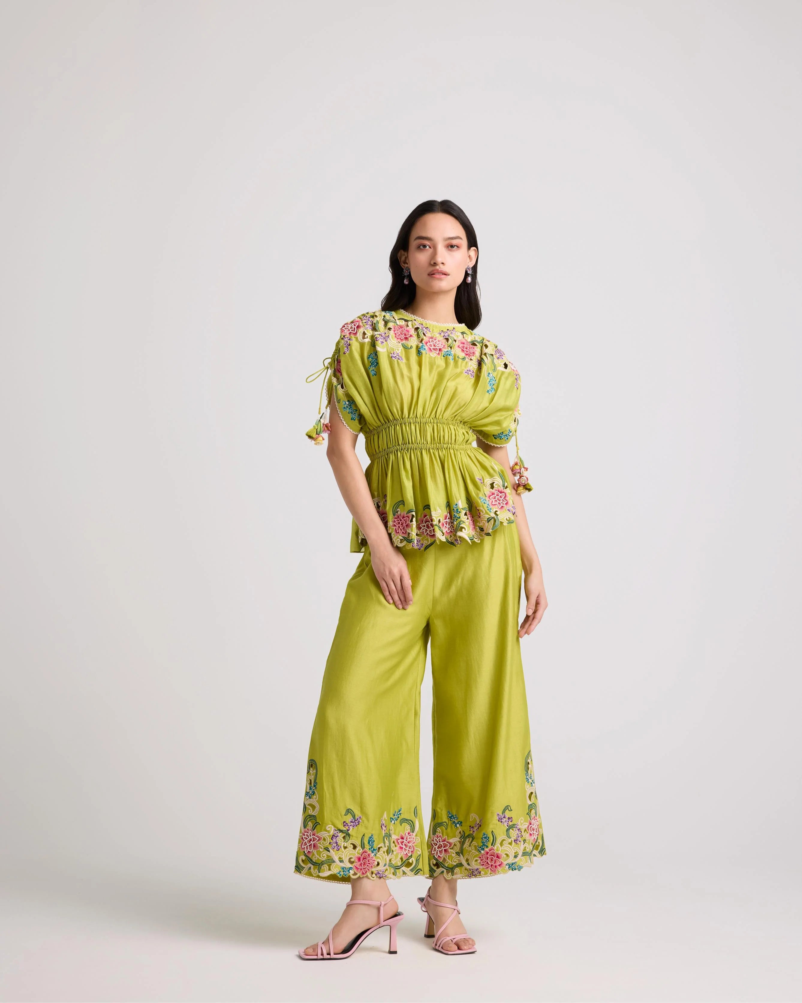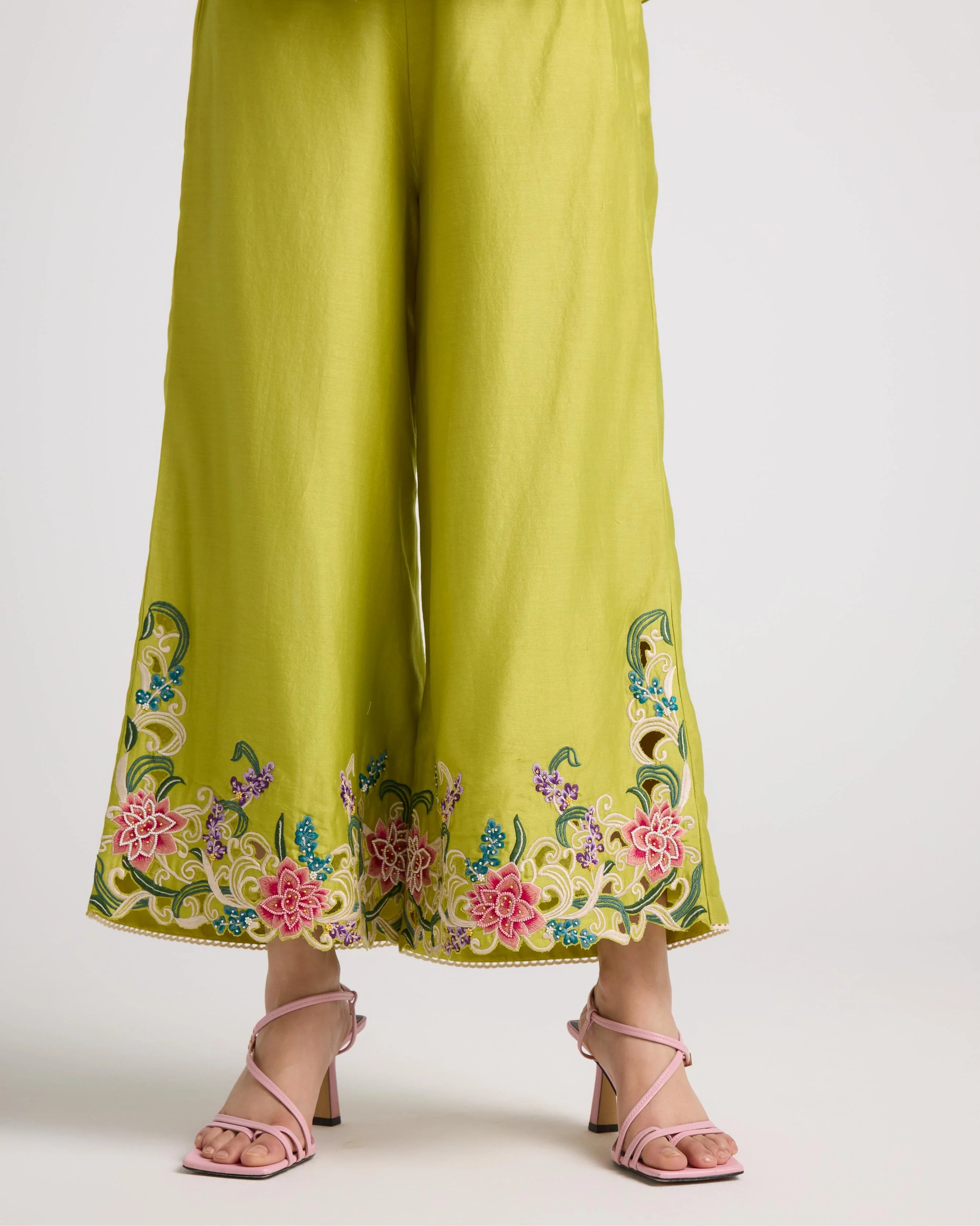 Lime Green Floral Cutwork Pants