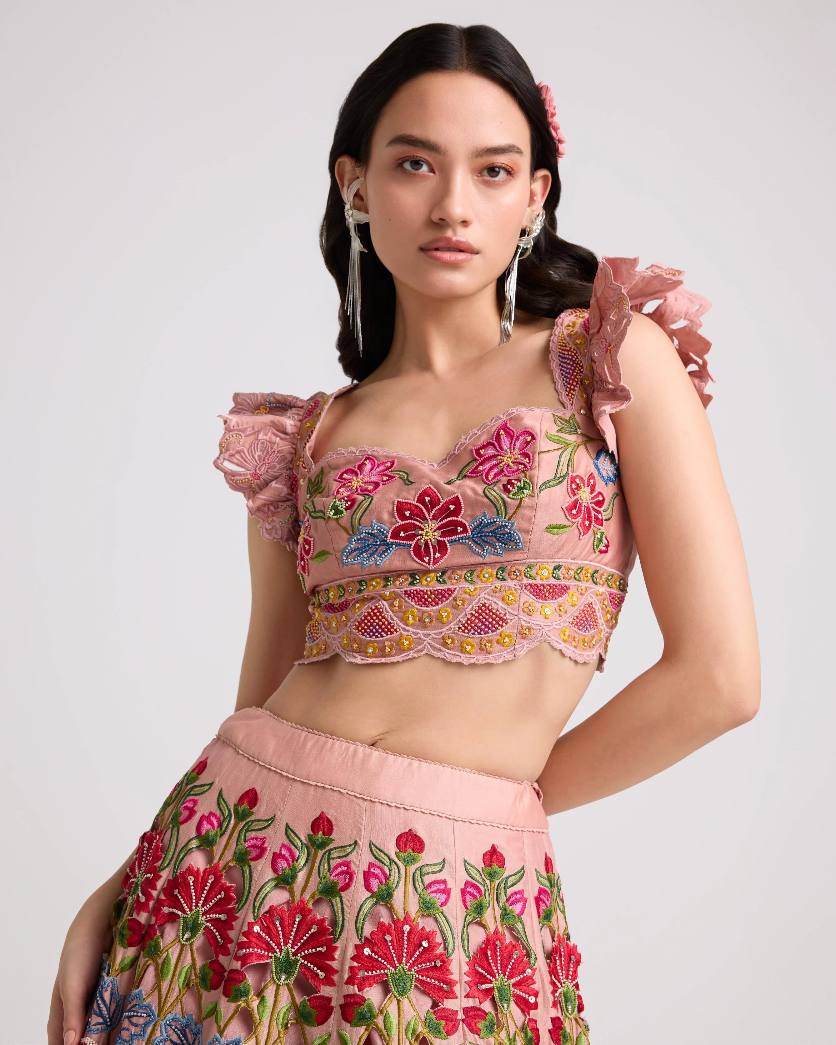 Soft Pink Multicolor Floral Bustier