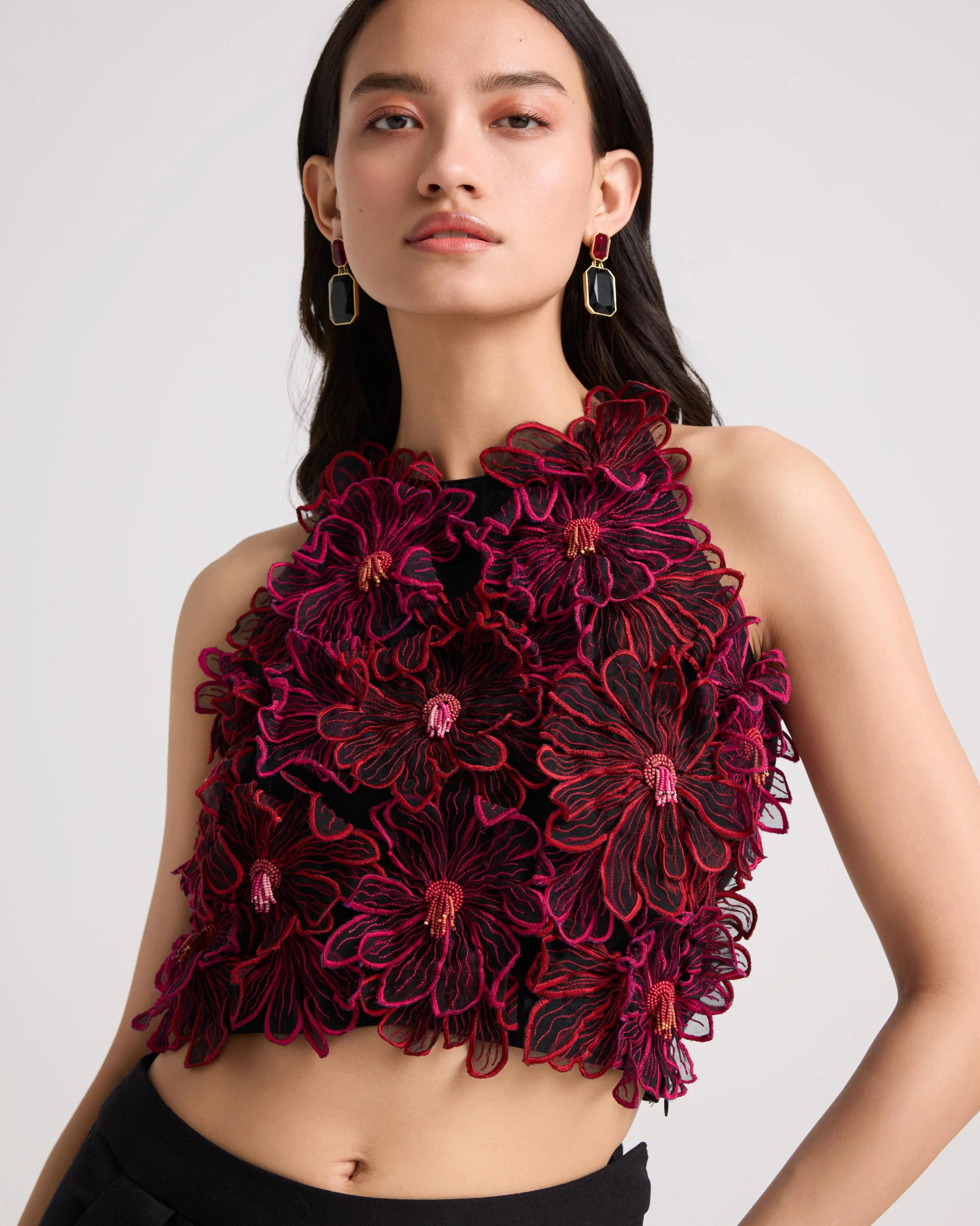 Black Daisy 3D Applique Top
