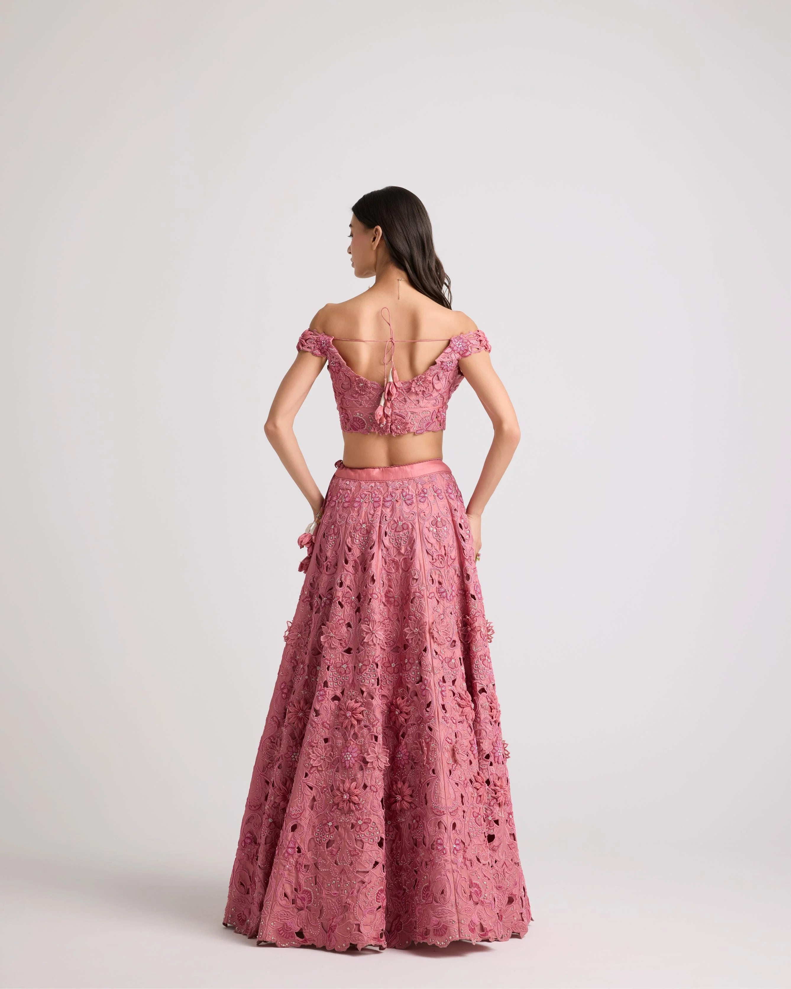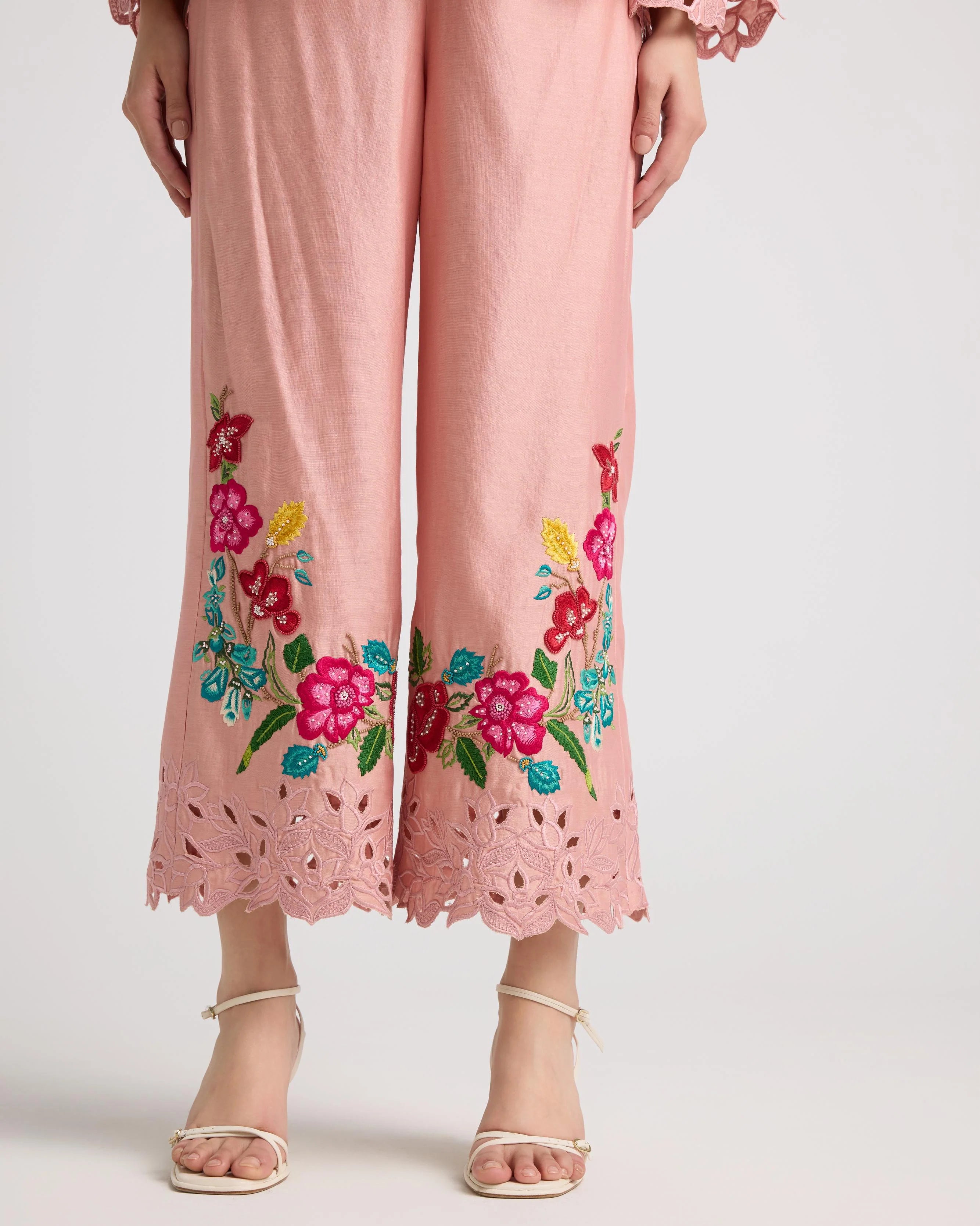 Soft Pink Threadwork And Cutwork Pants