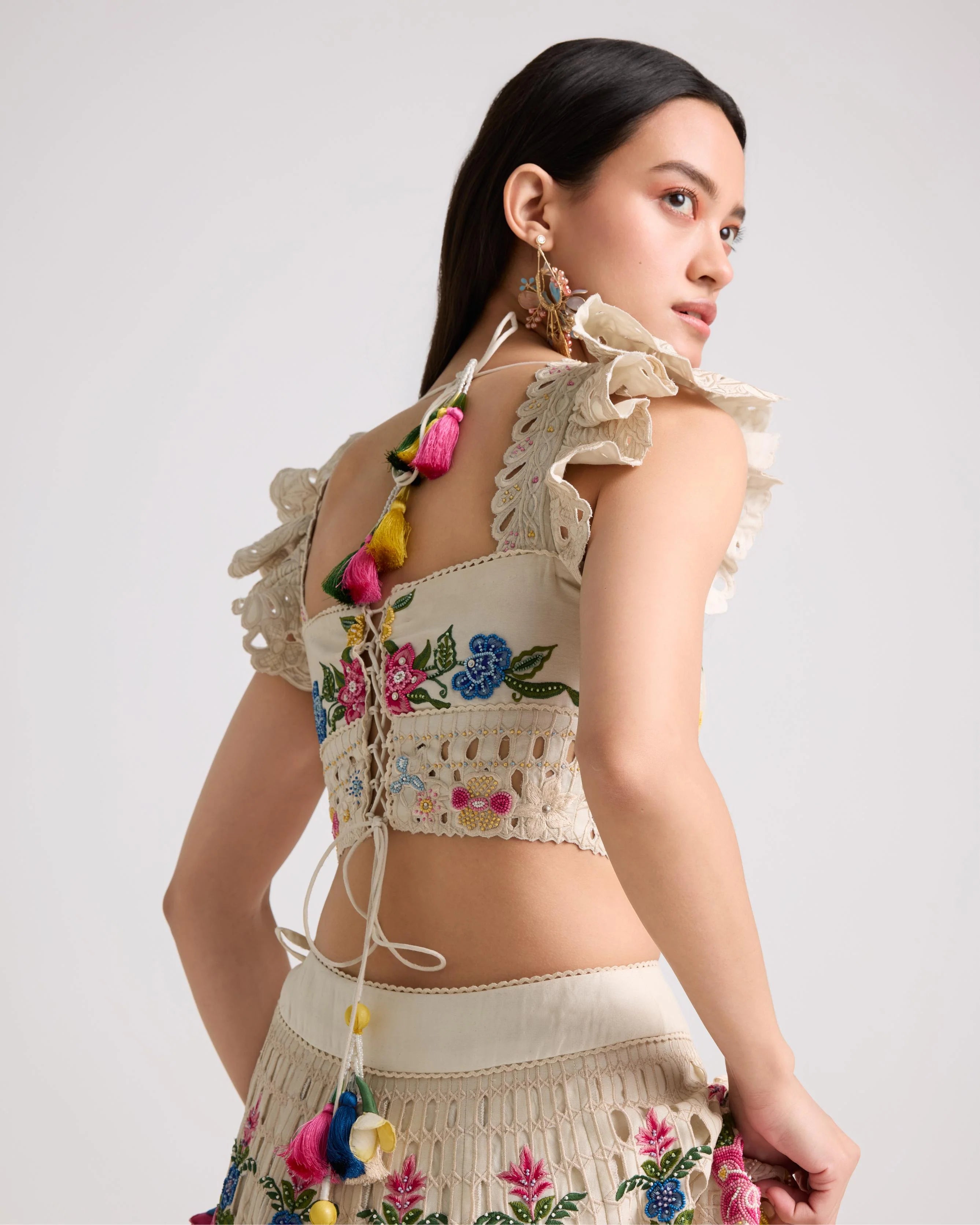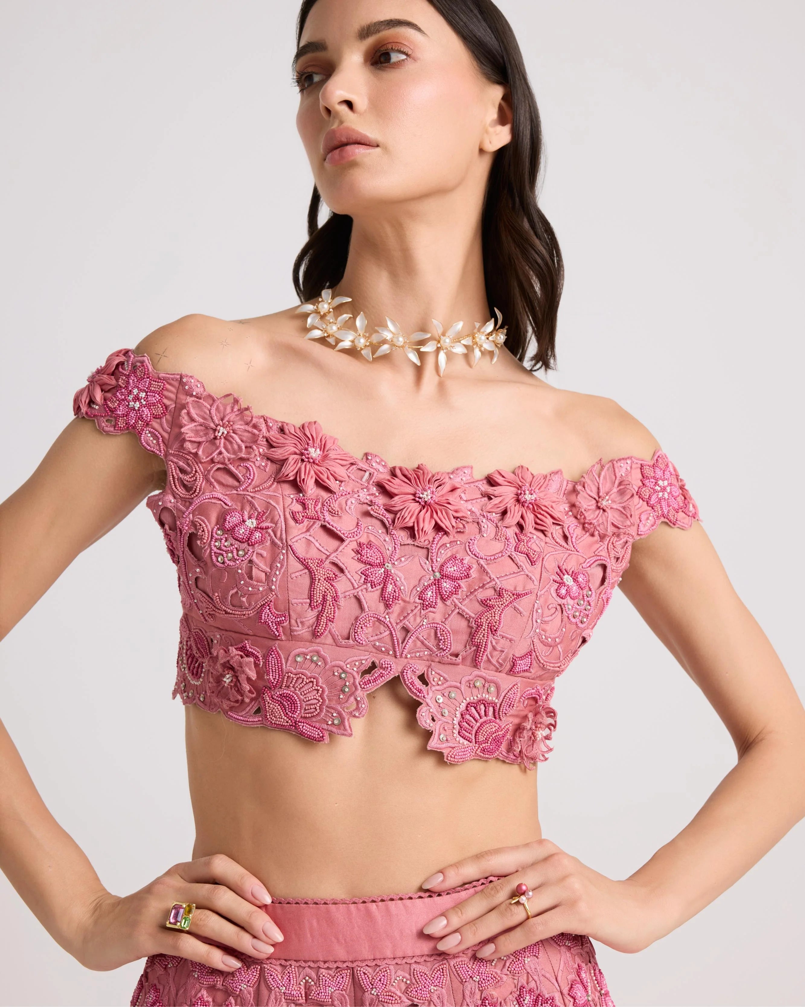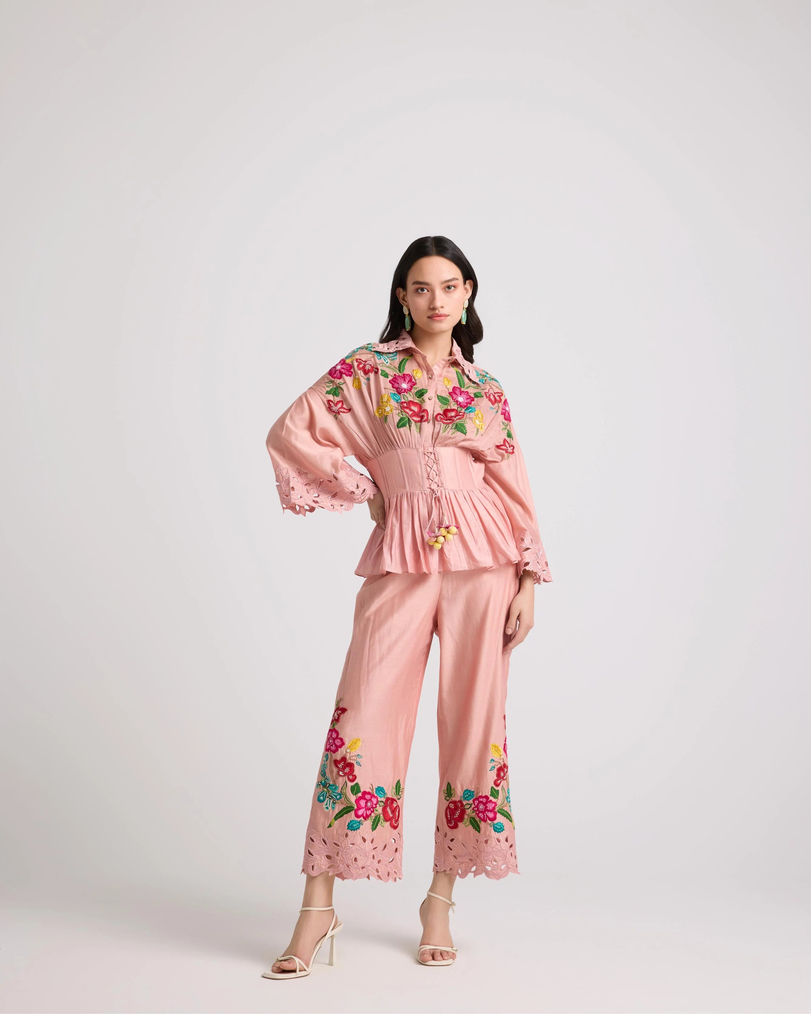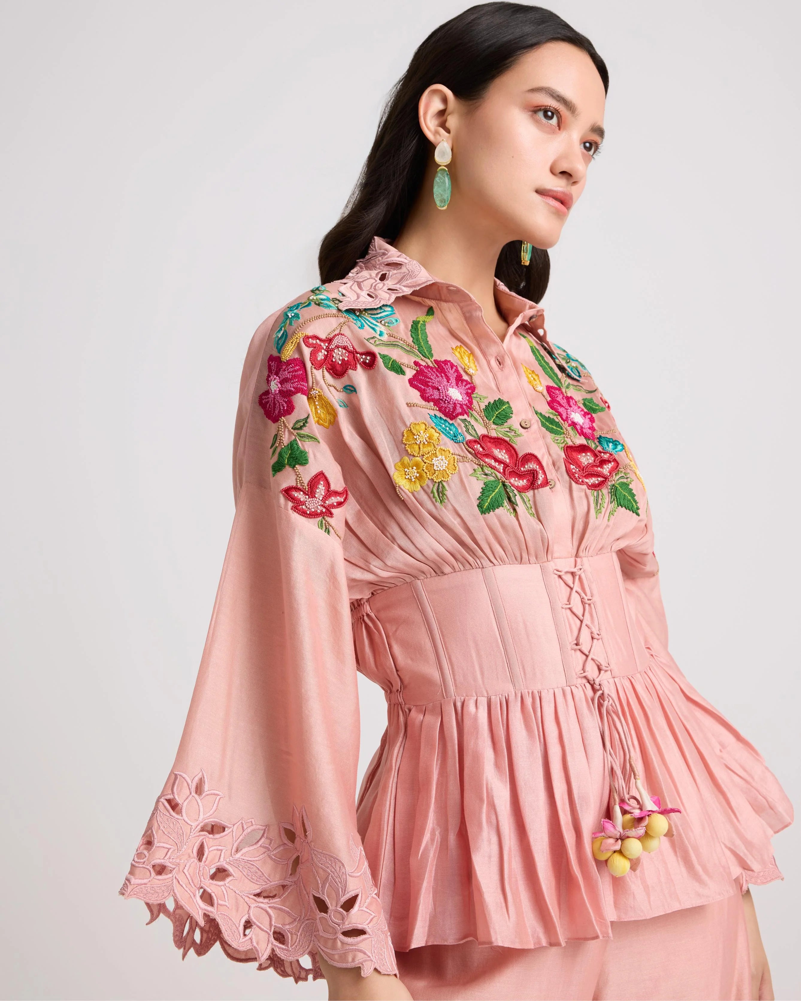 Soft Pink Embroidered Corset Shirt