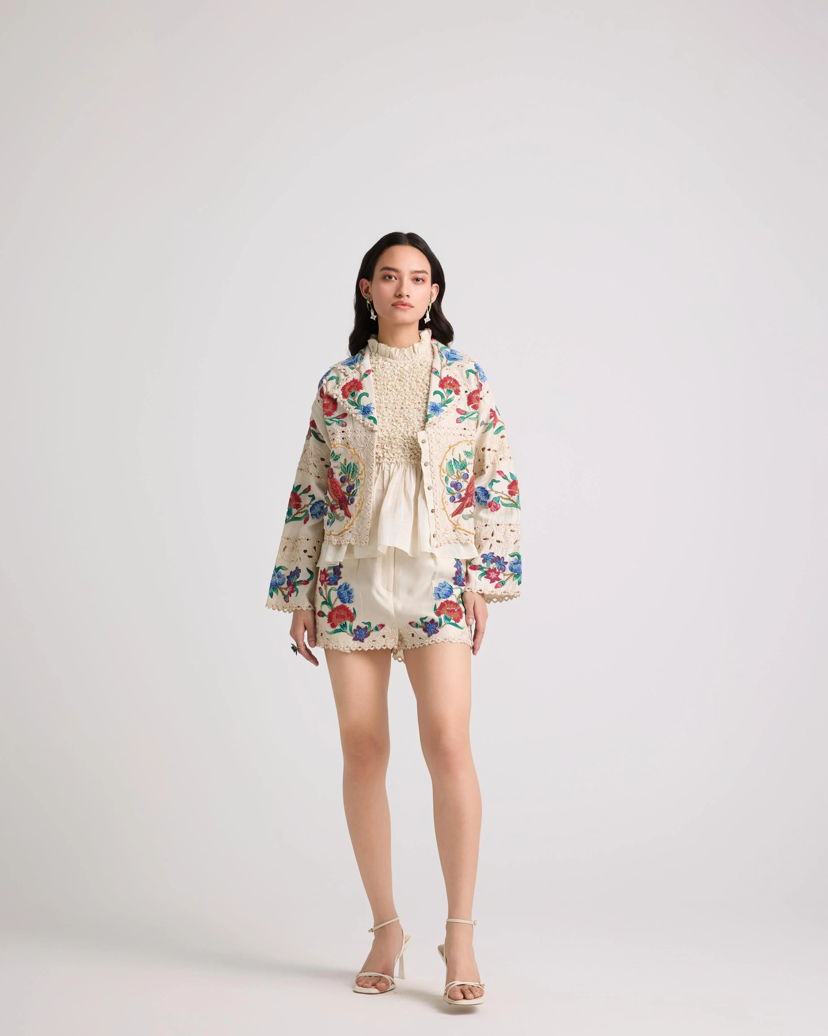 Ivory Applique And Beadwork Shorts