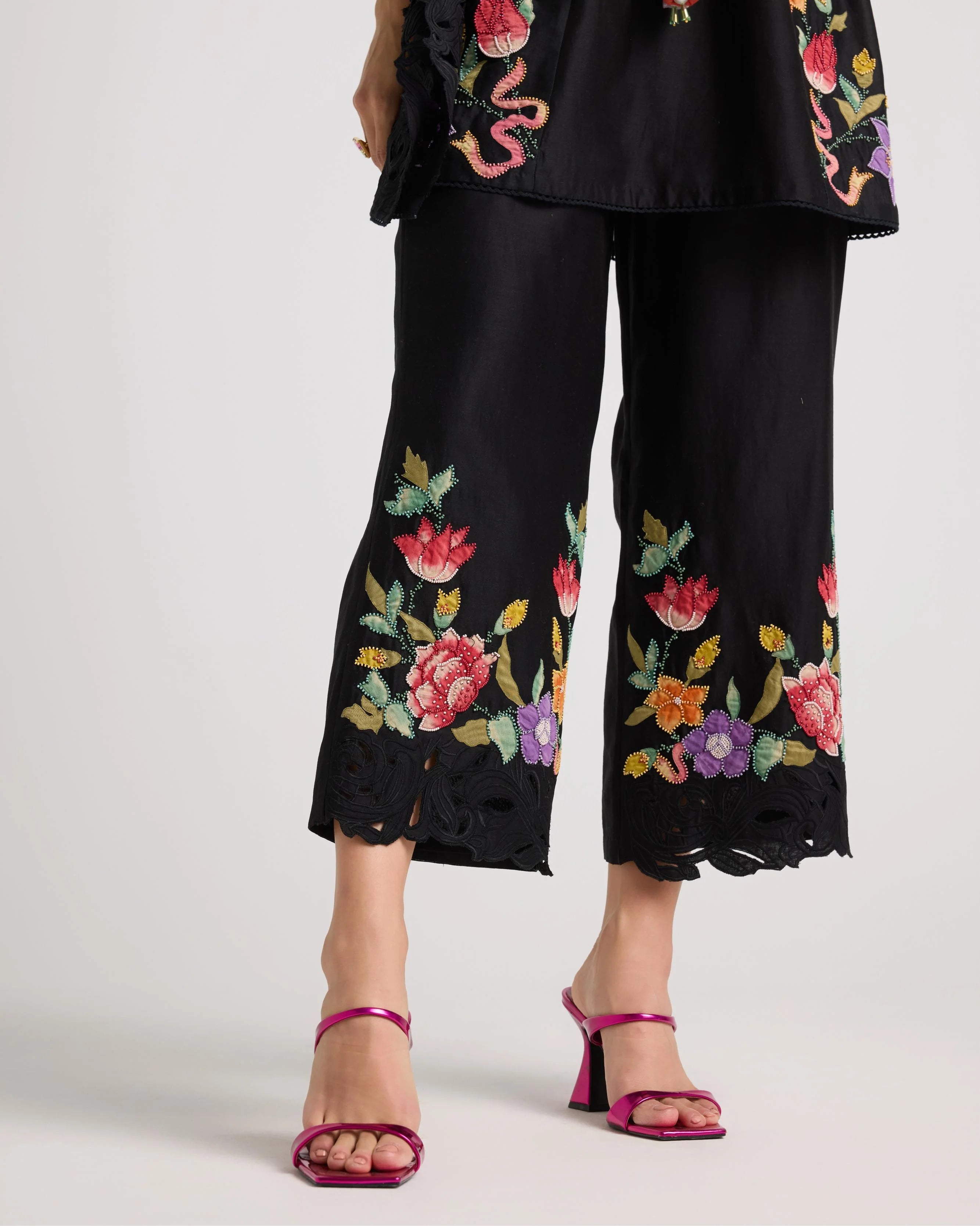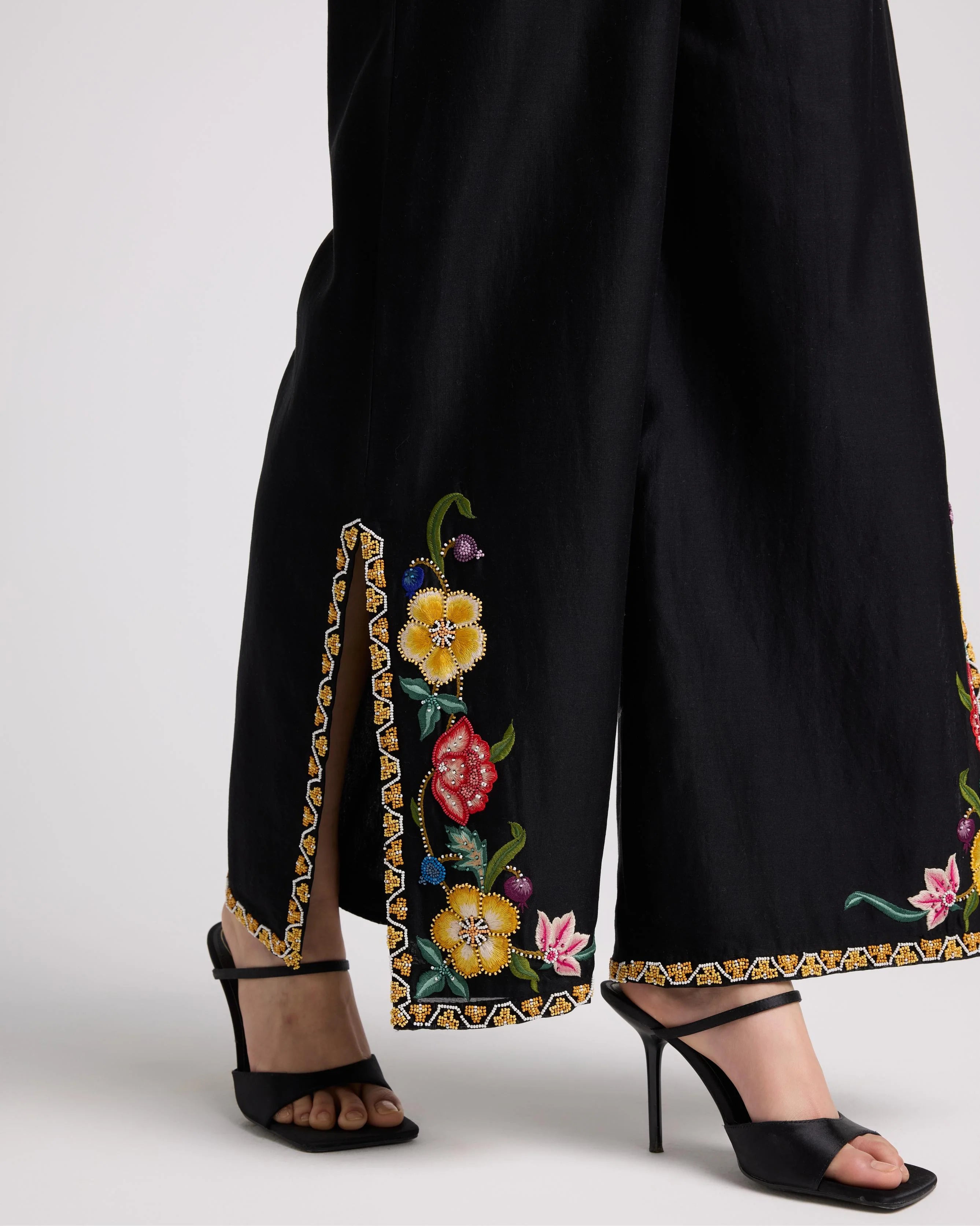 Black Applique And Beadwork Pants
