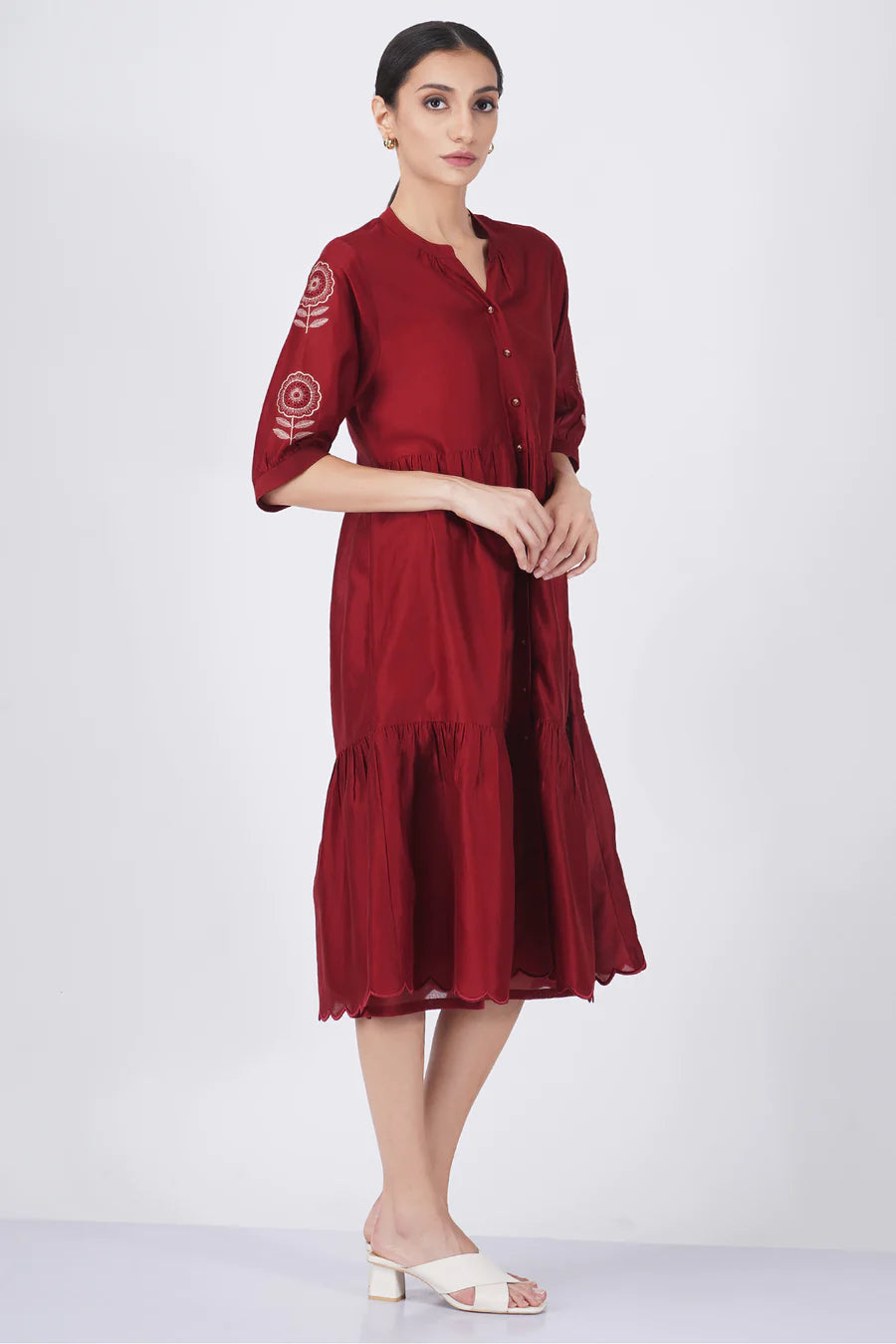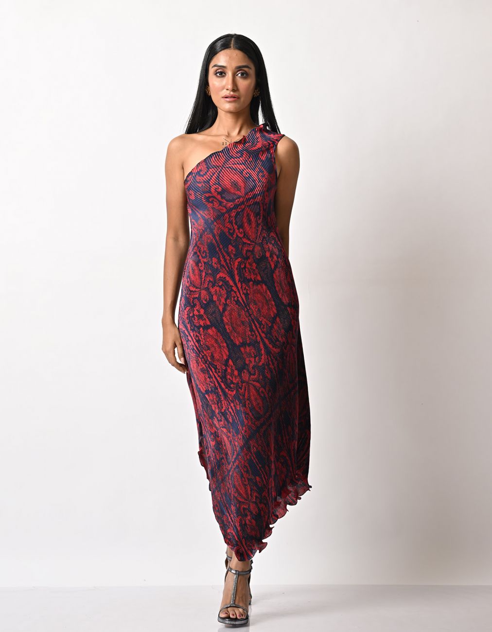 Blue Green Pleated Wrap Dress With Zardozi Motif