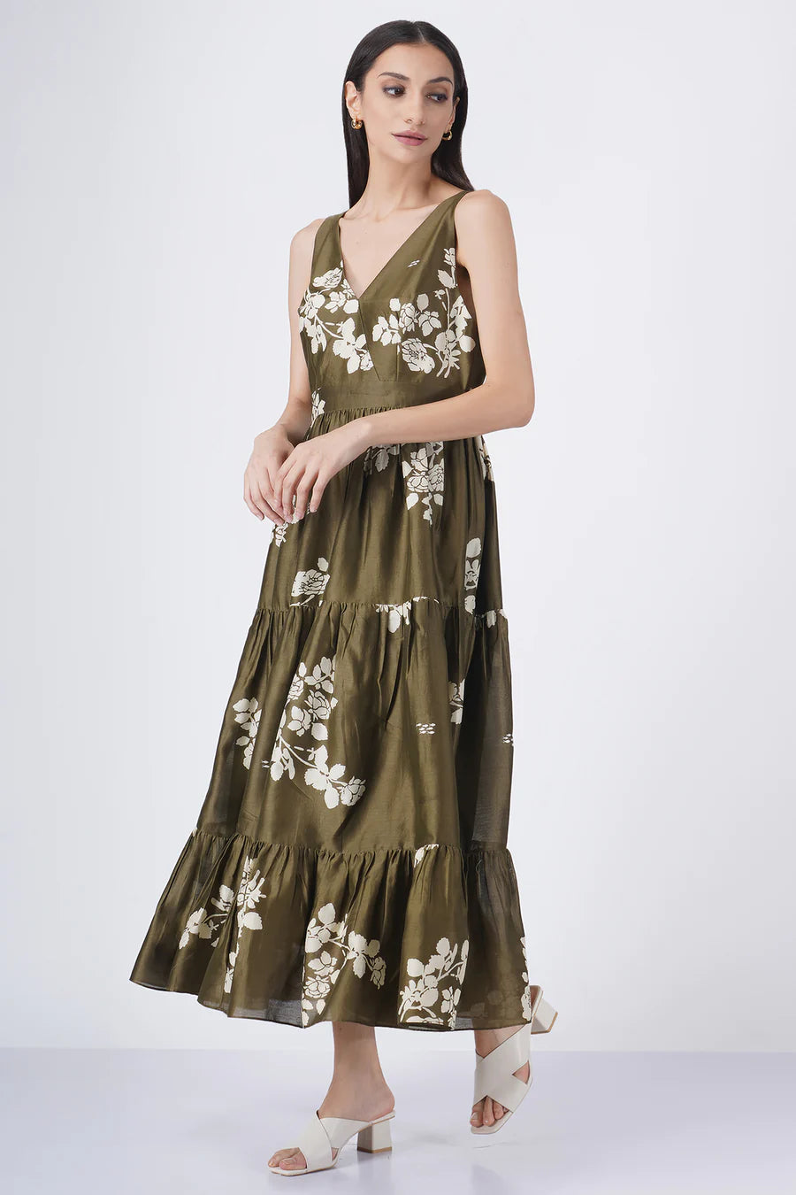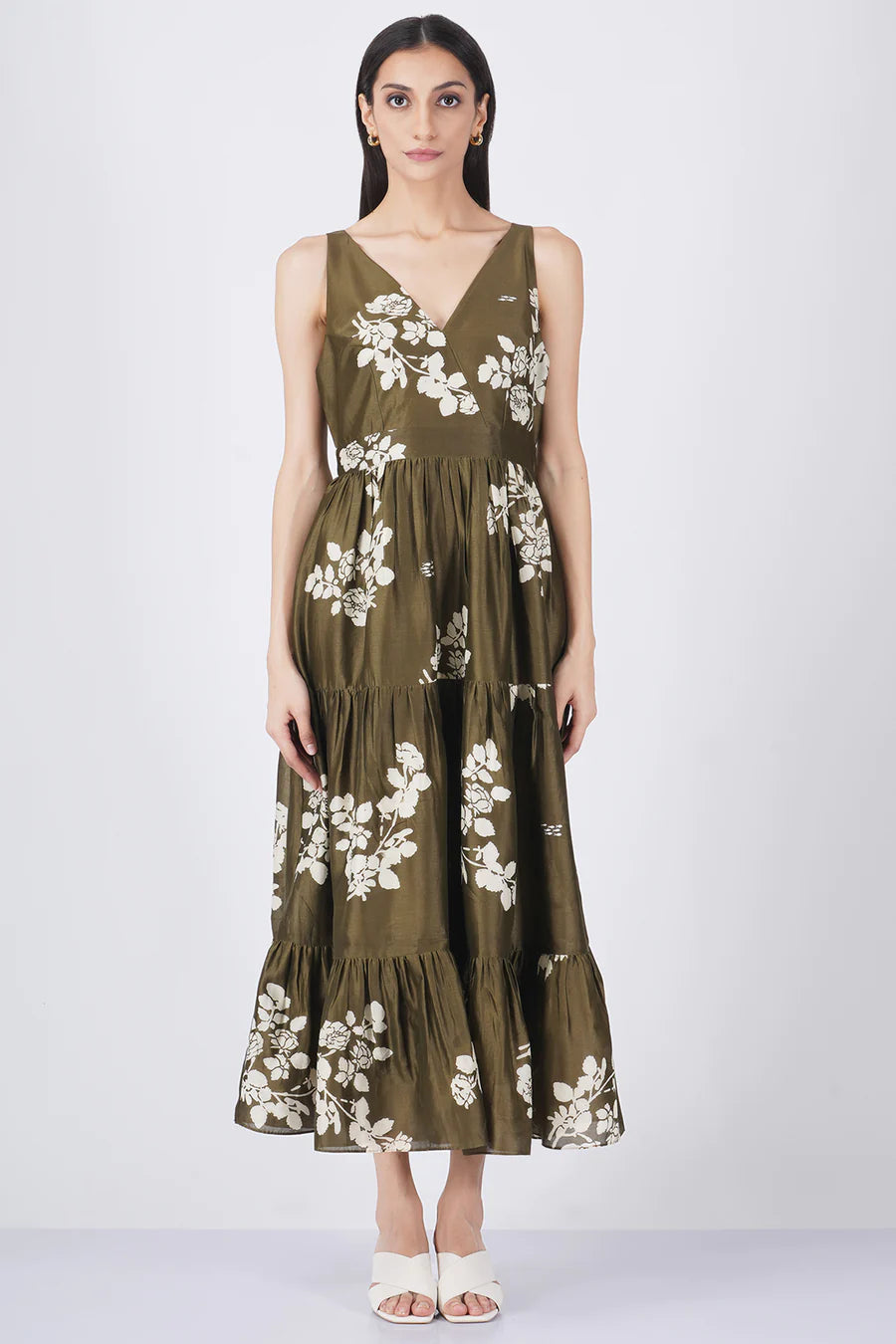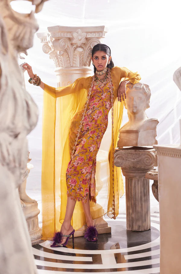 Discharge Printed Organza Jacket With Solid Overlap Dress
