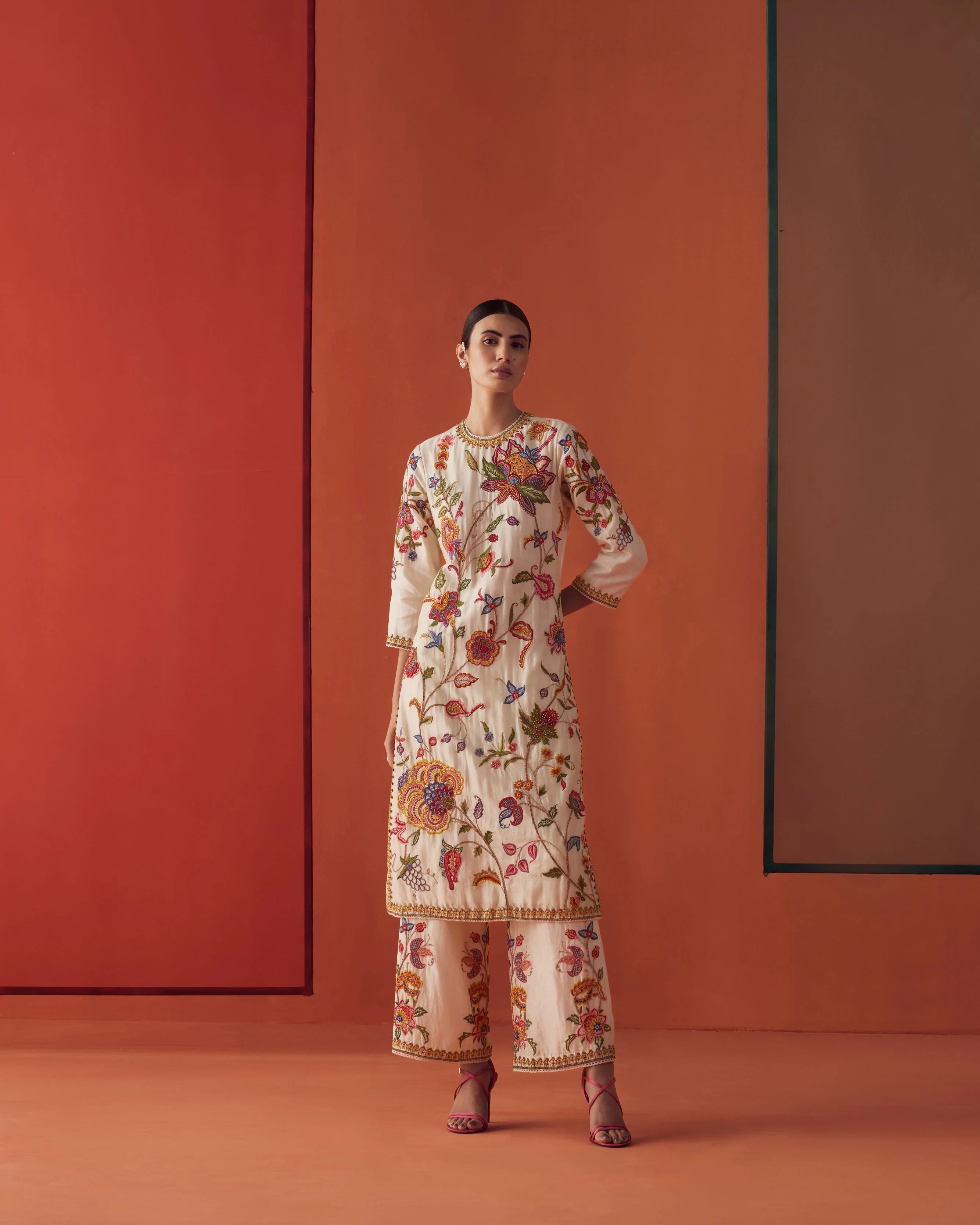 IVORY TONAL CUTWORK AND BEADWORK KAFTAN