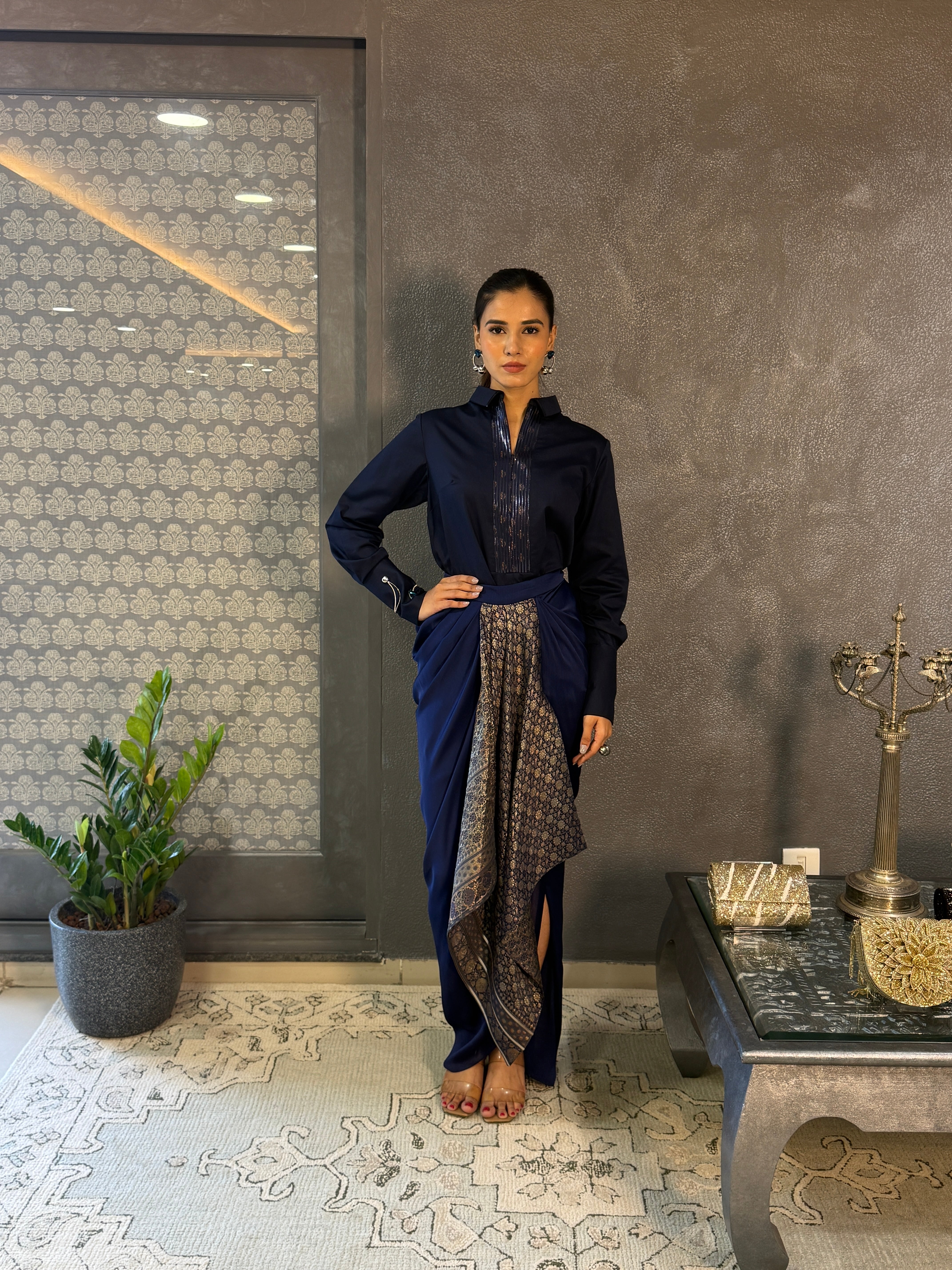 Cosmos Blue Chiffon Drape Skirt Set