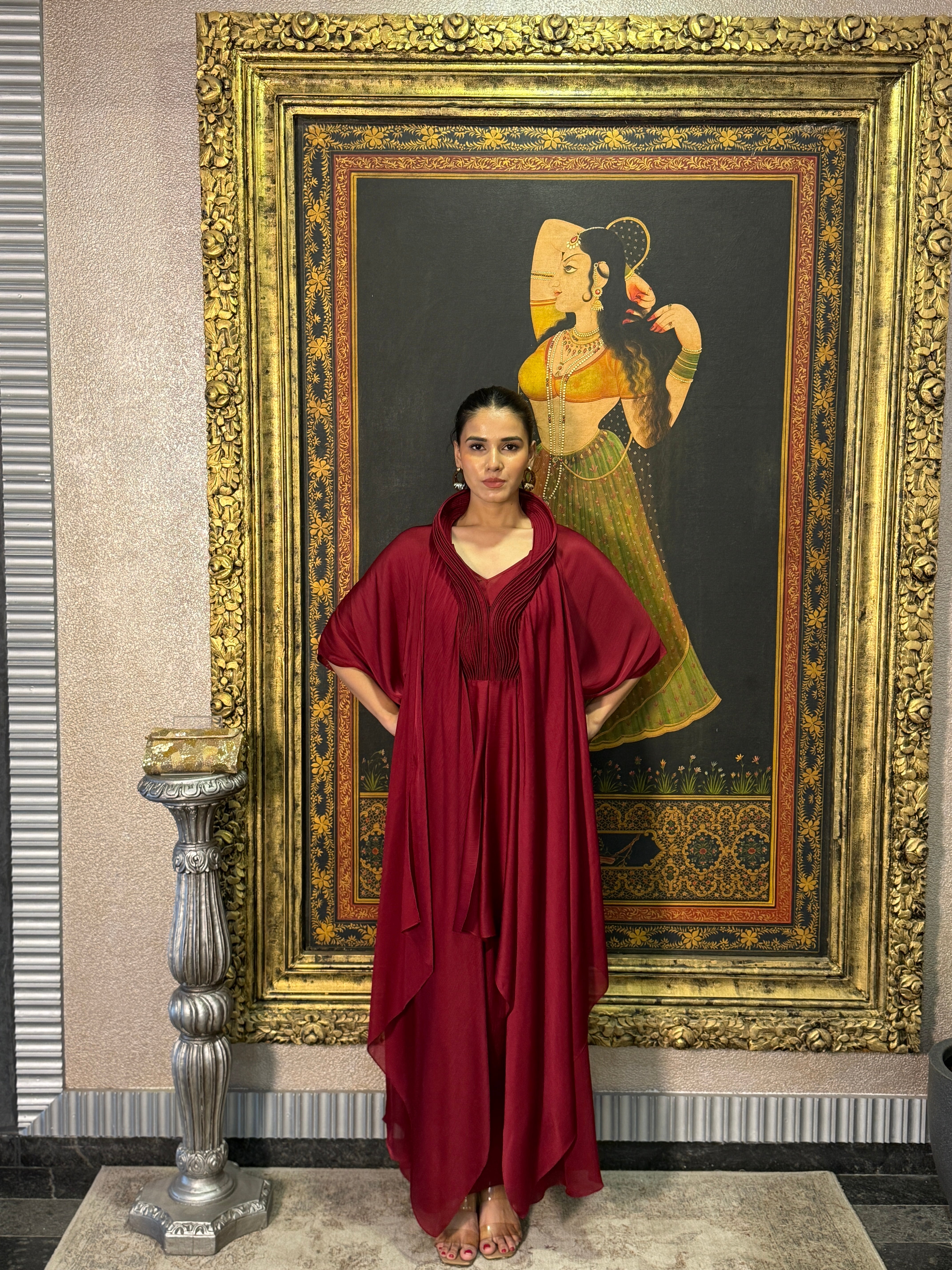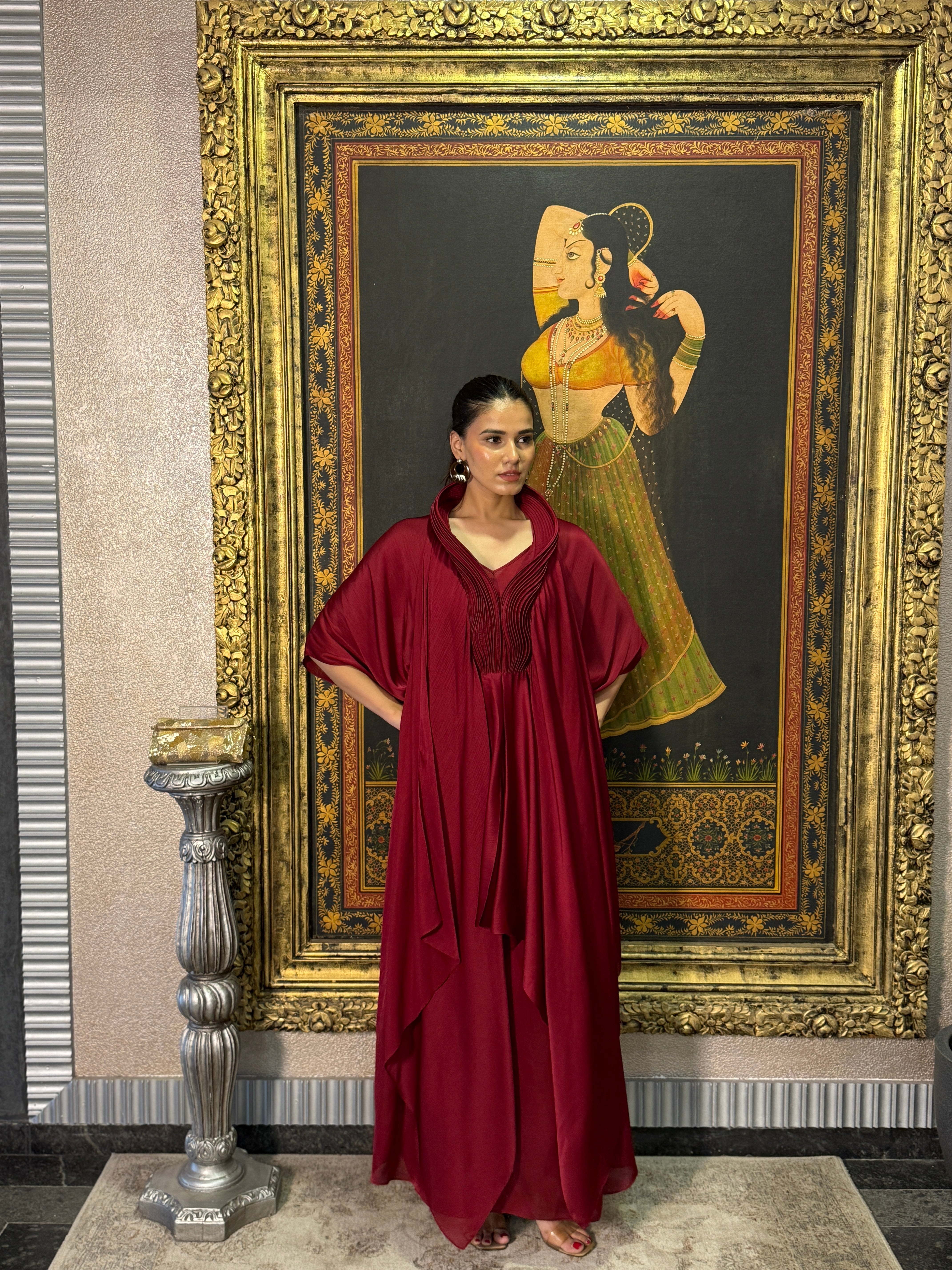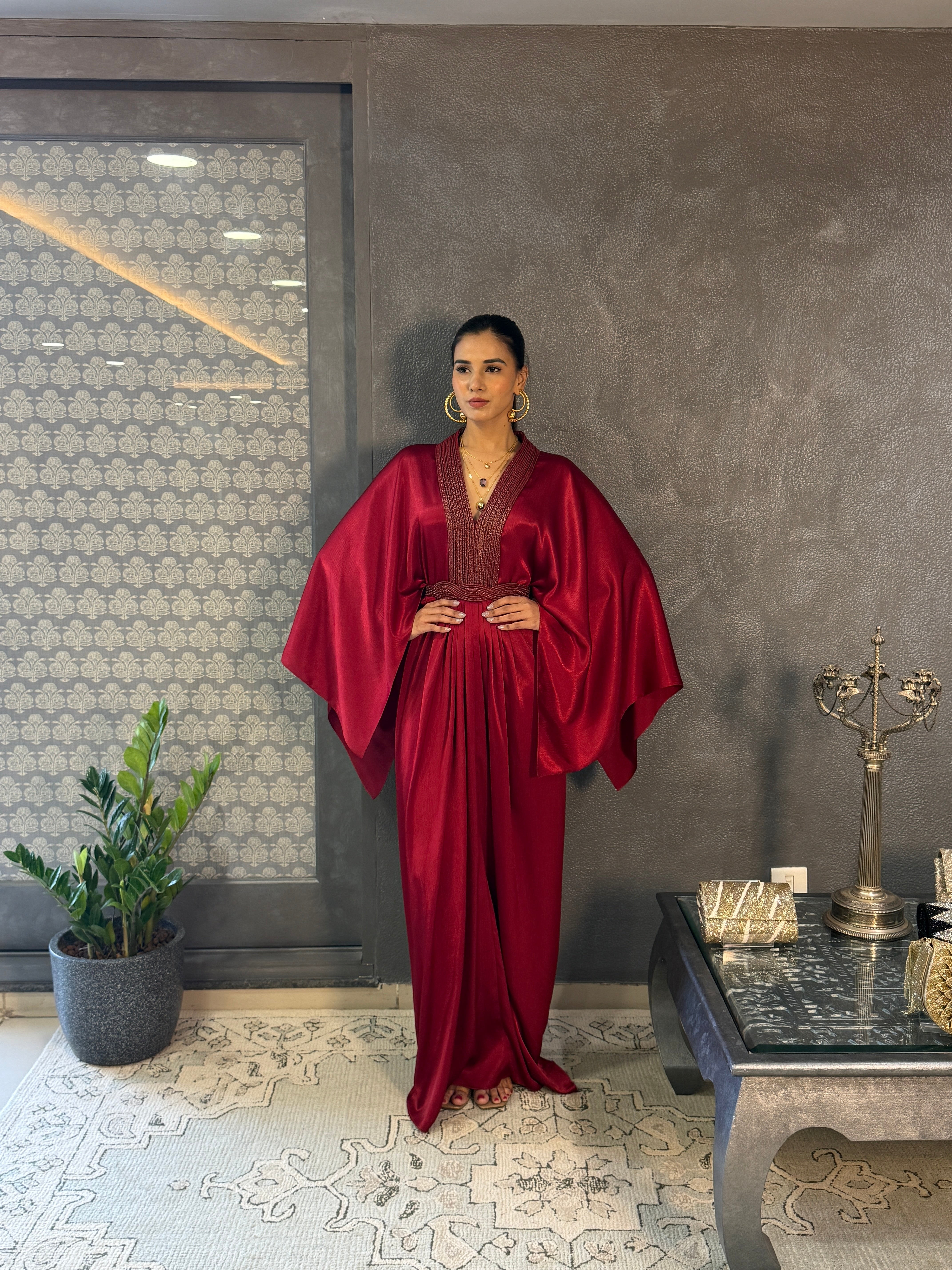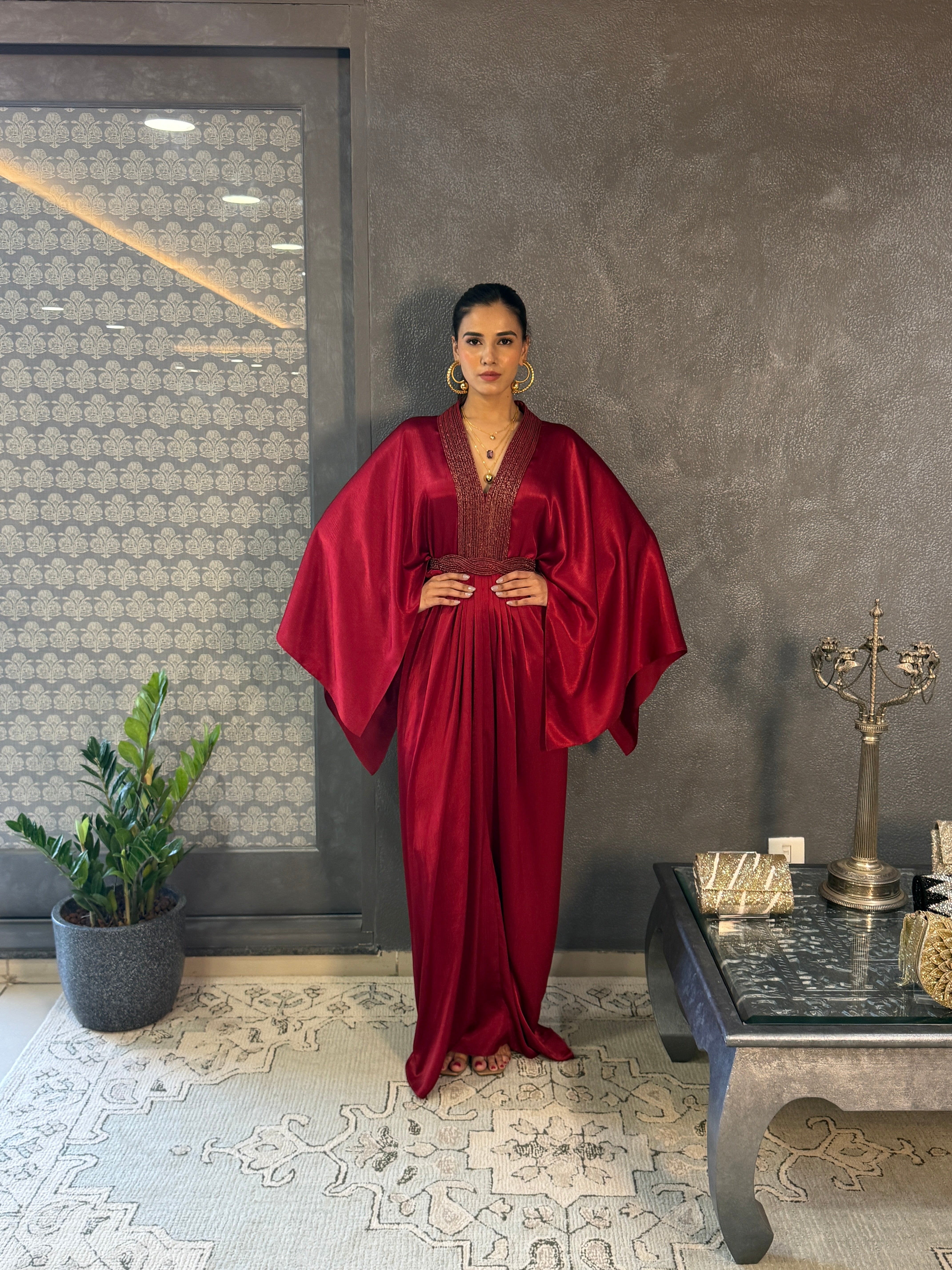 Deep Red Polyster Kaftan Set