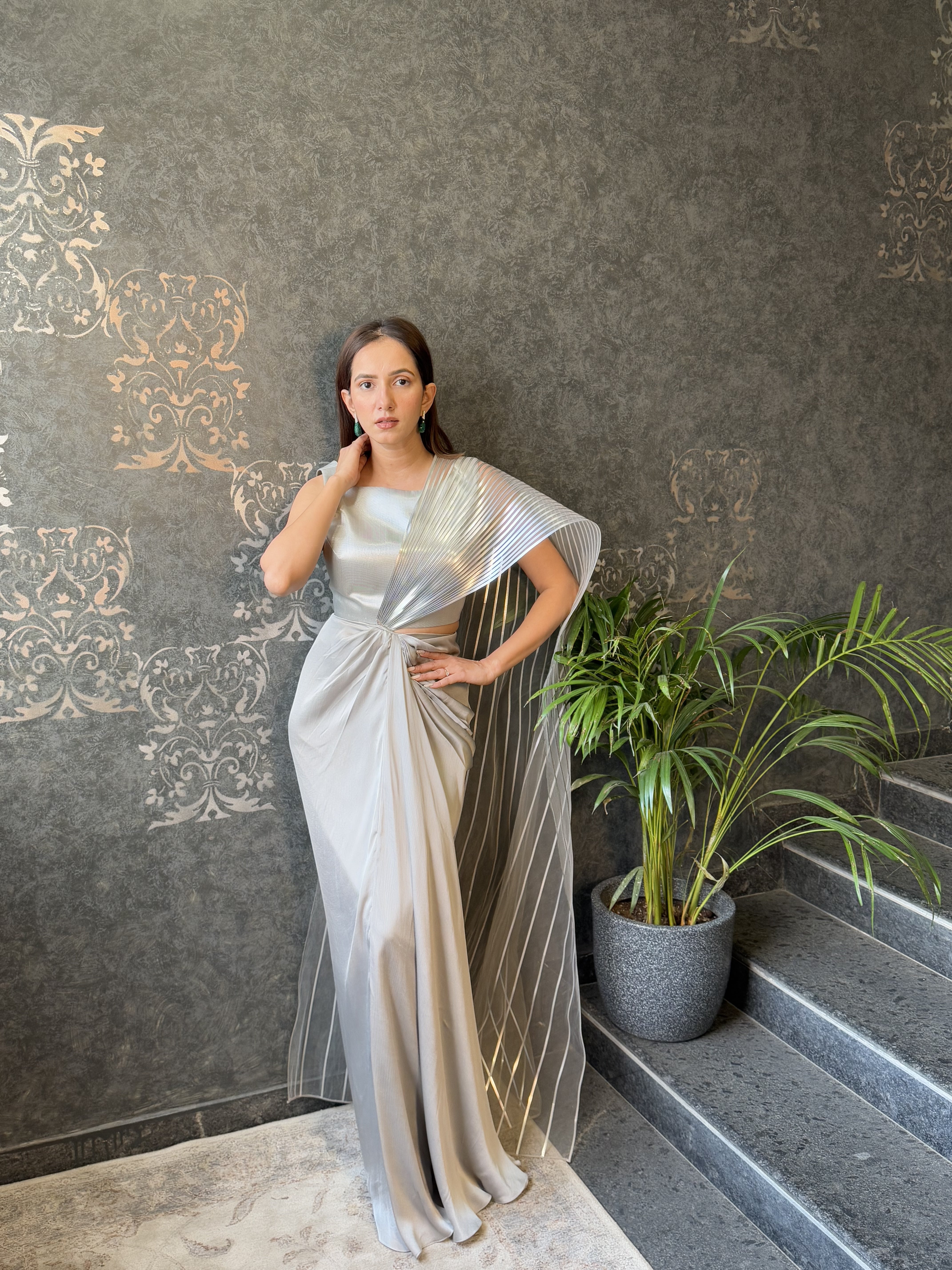 Metallic Wings Saree With Chiffon Drape
