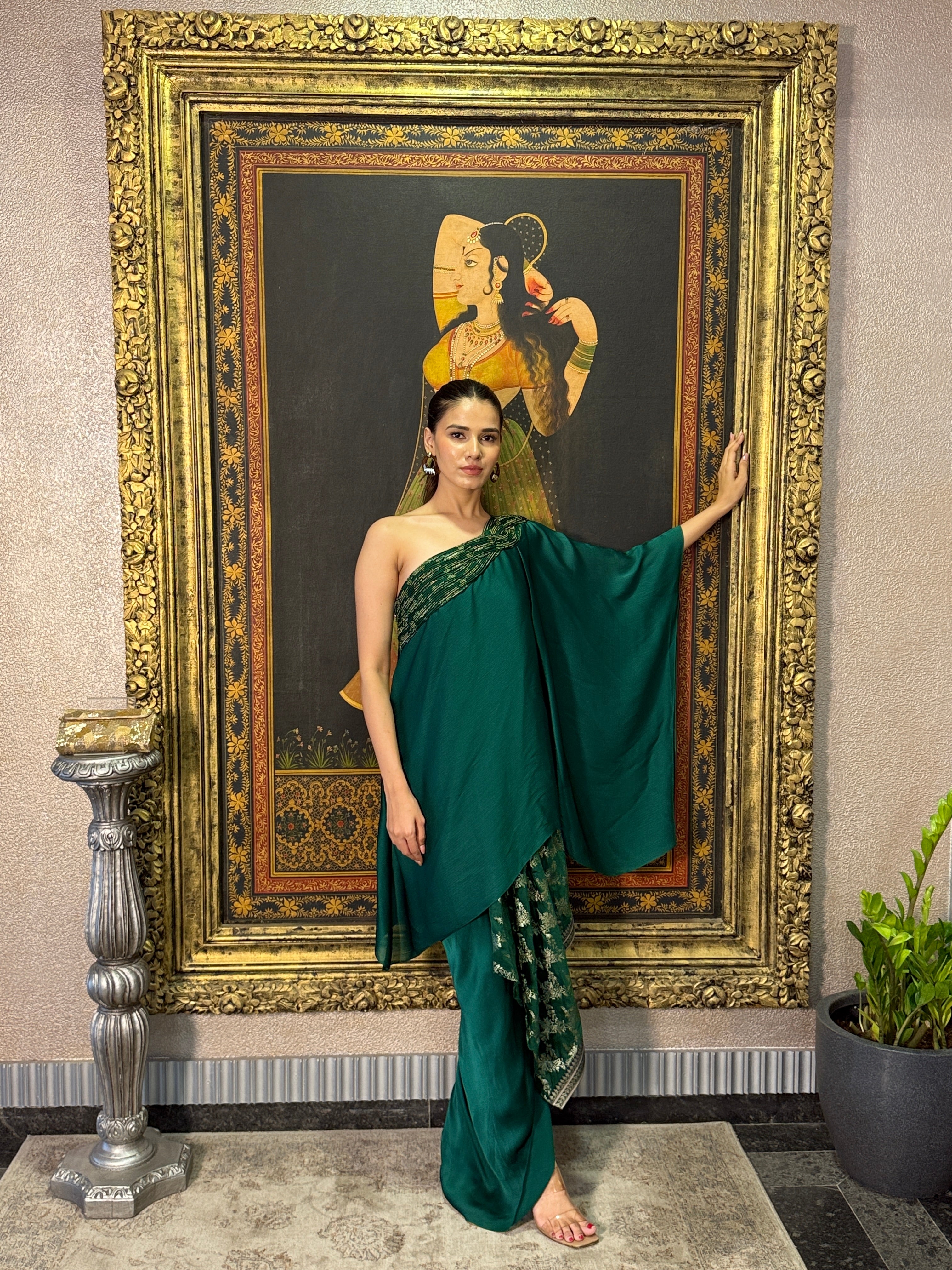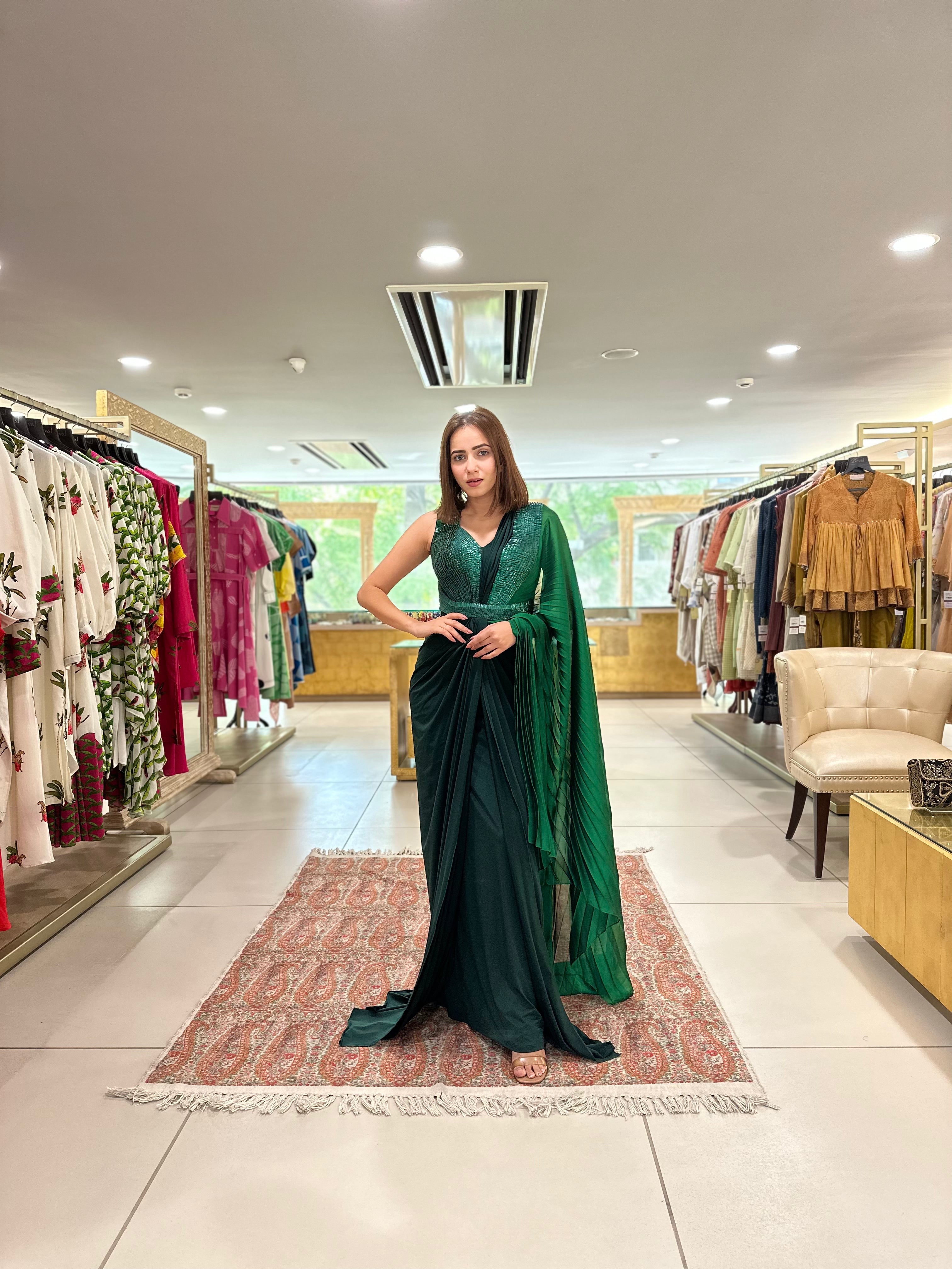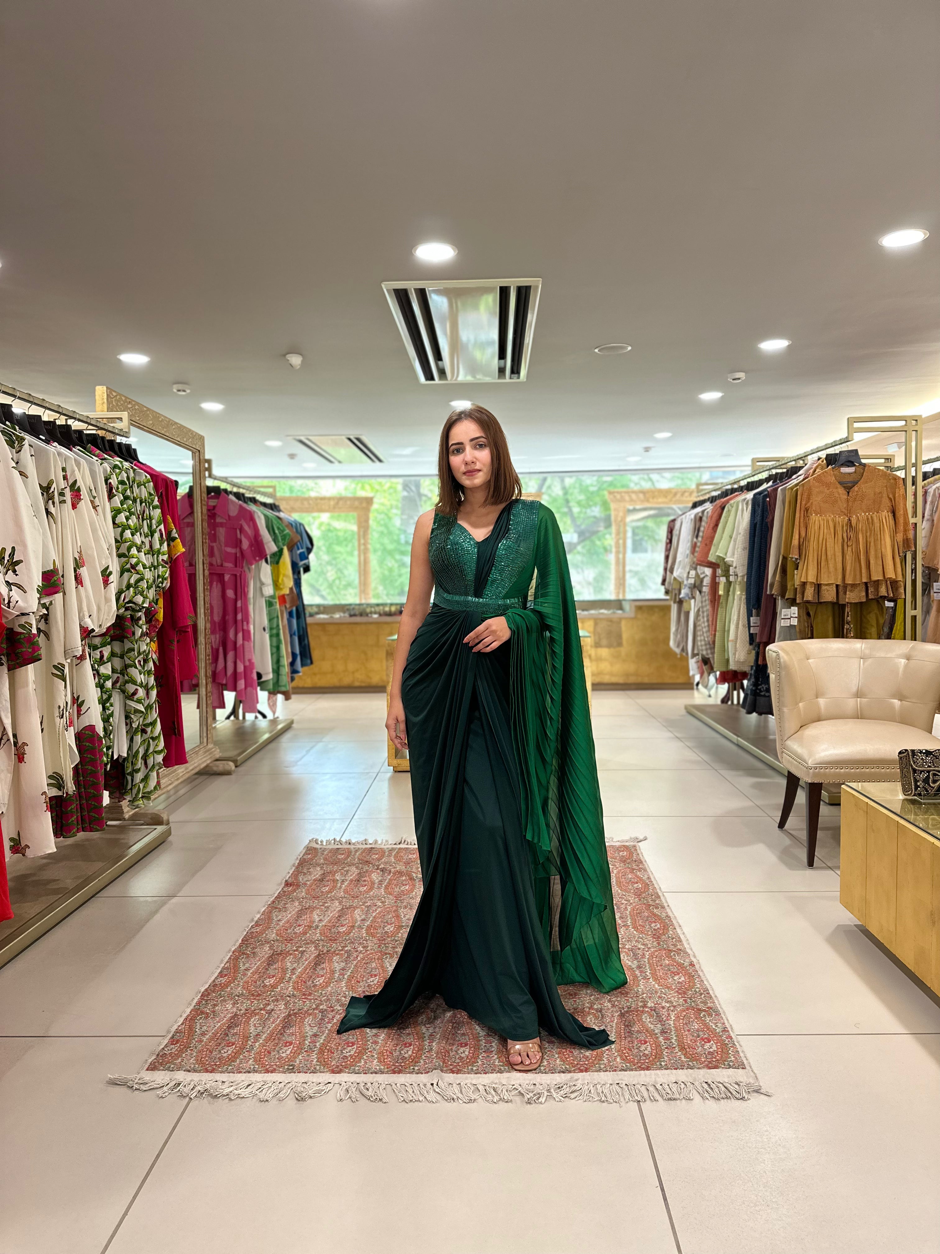 Emerald Ombre Jersey Gown Saree