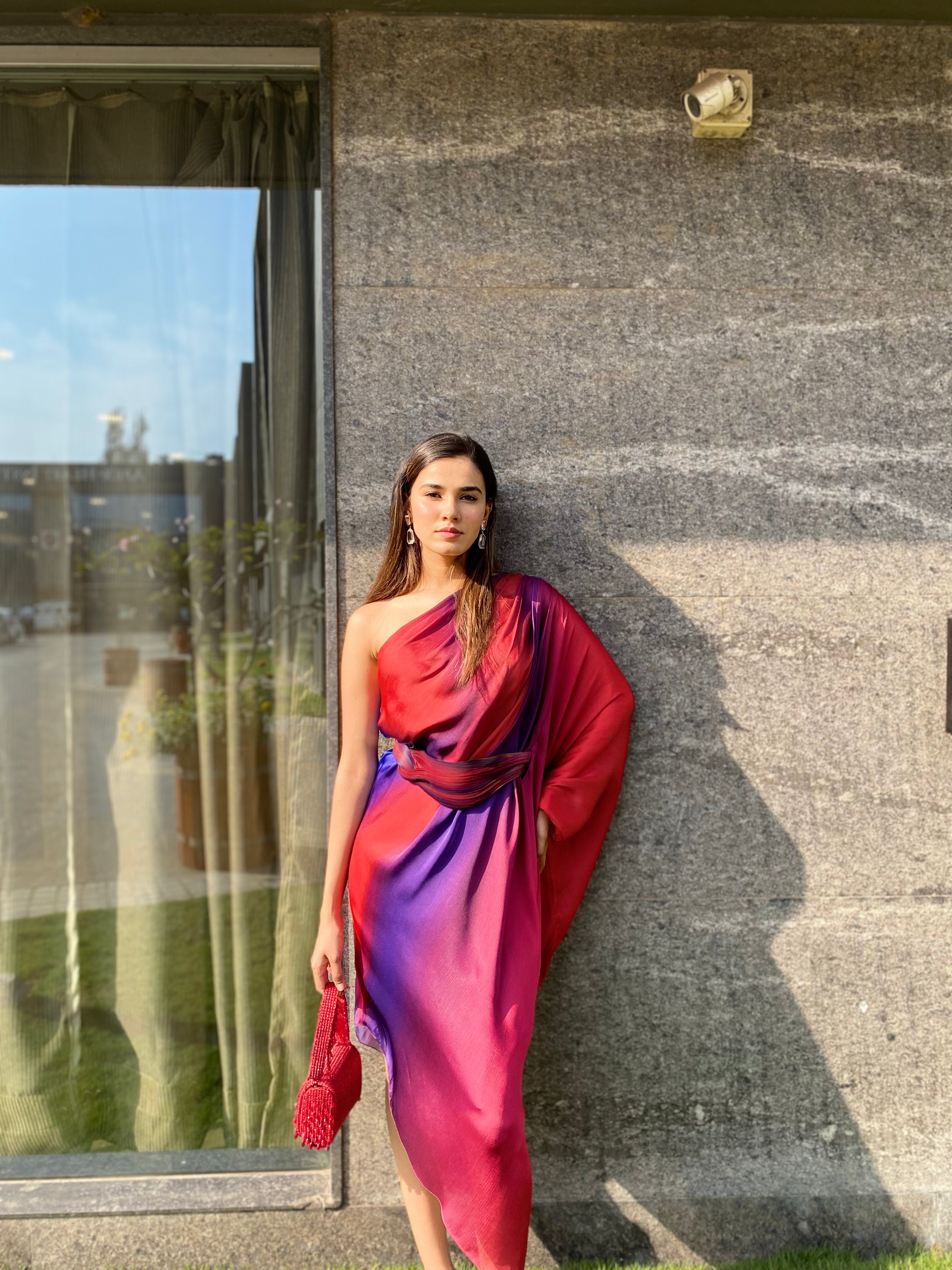 Metallic One Shoulder Watercolor Dress