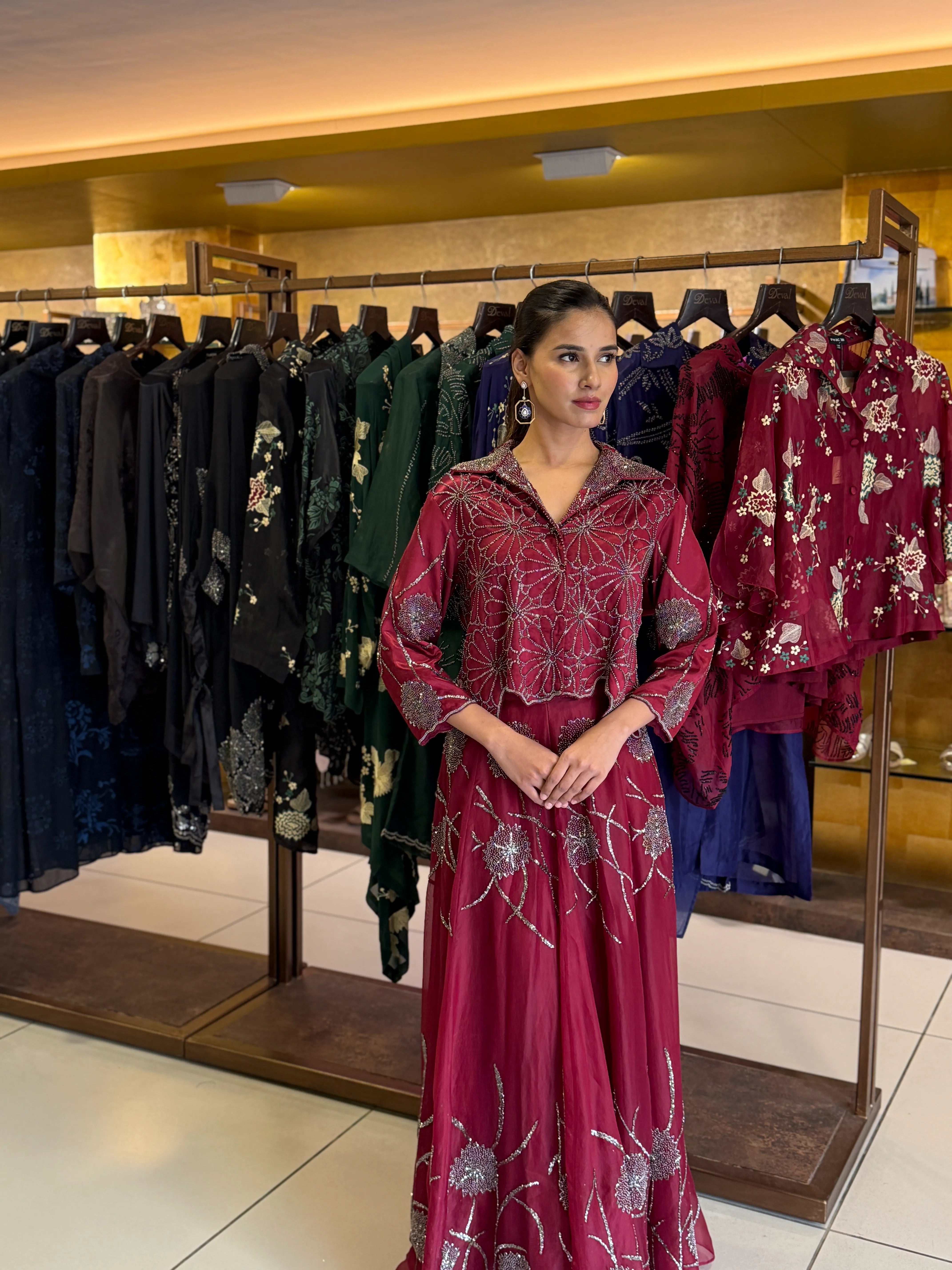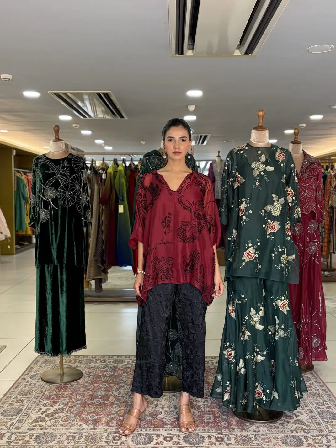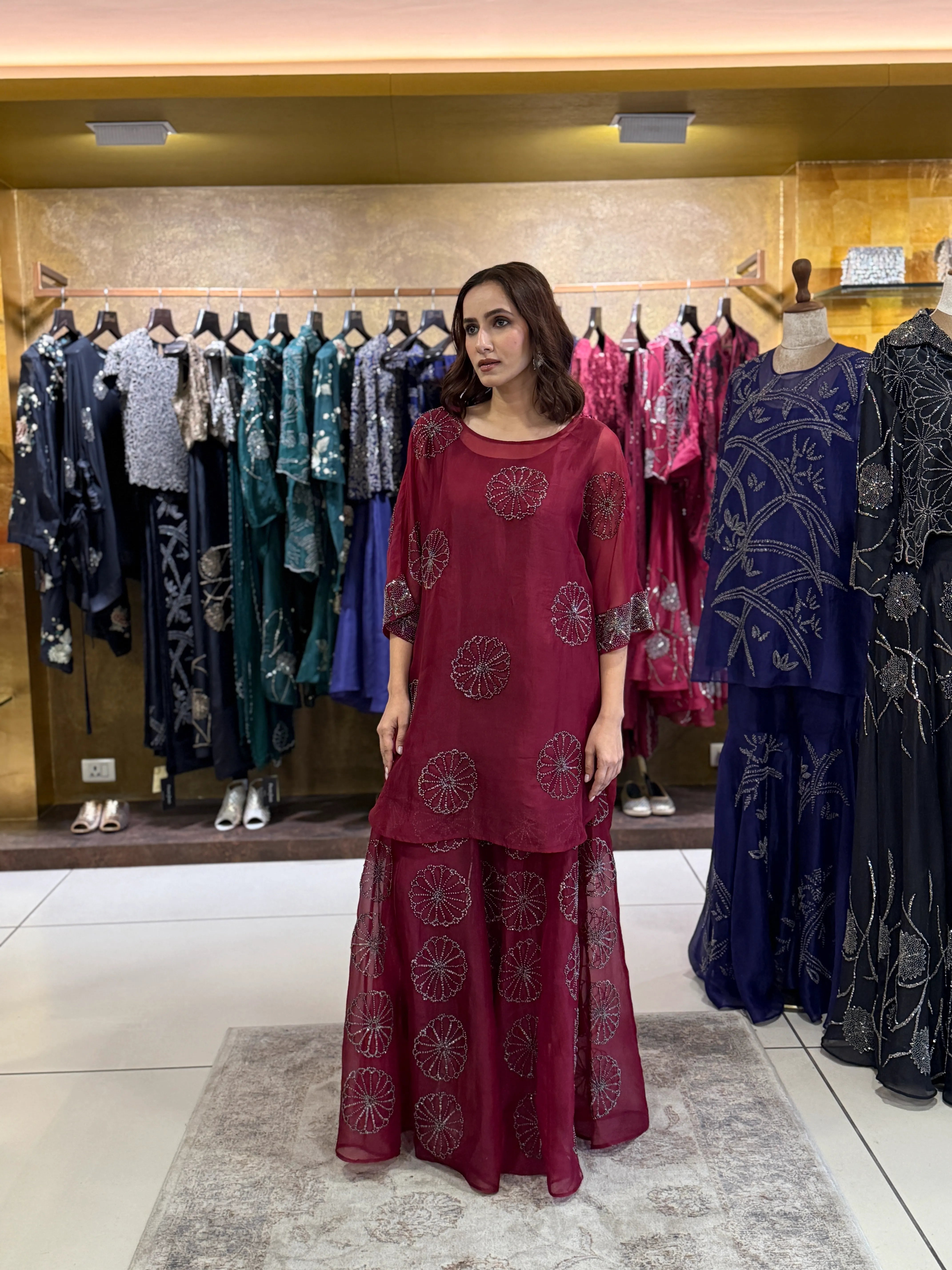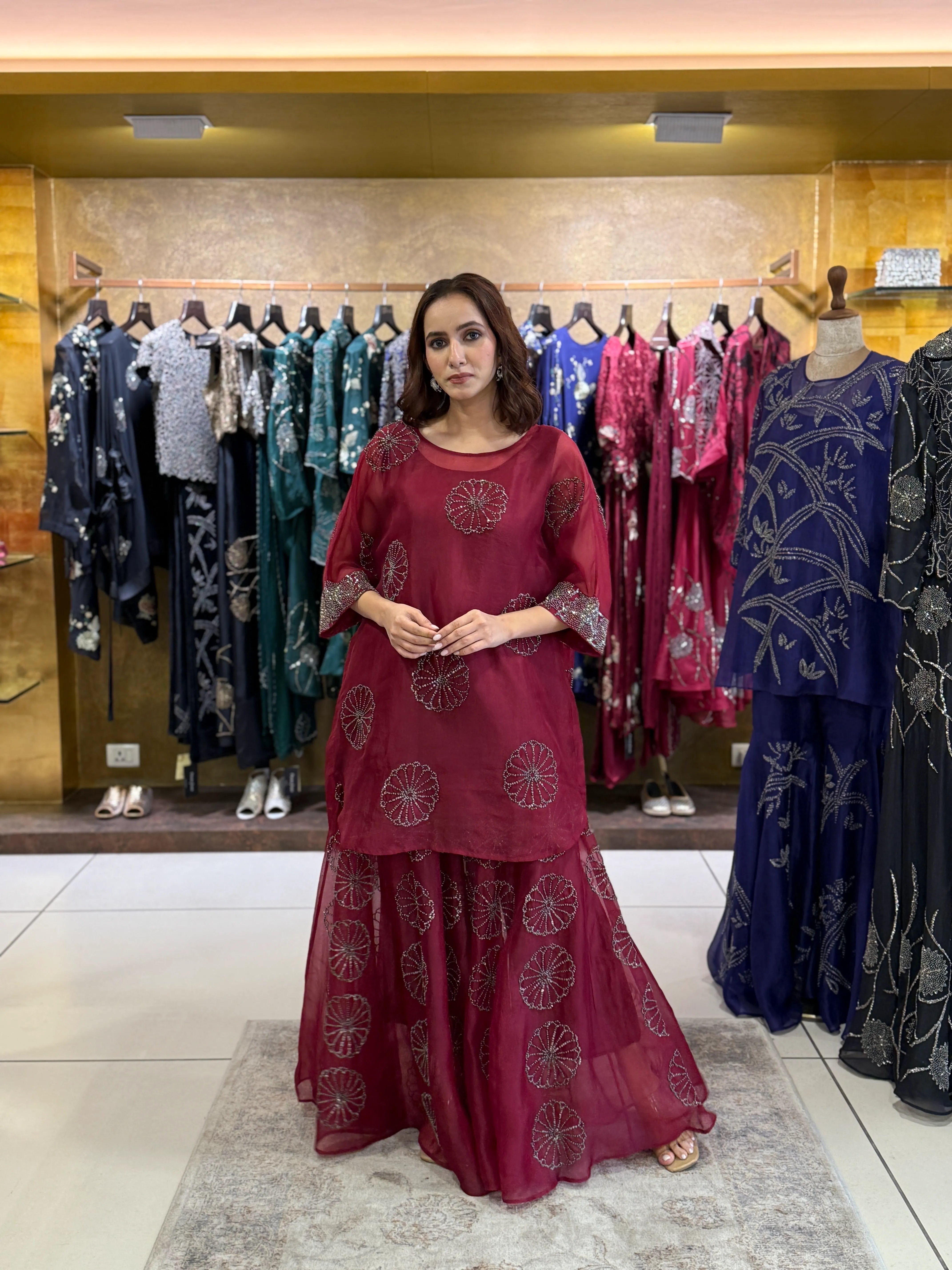 Red velvet tunic set