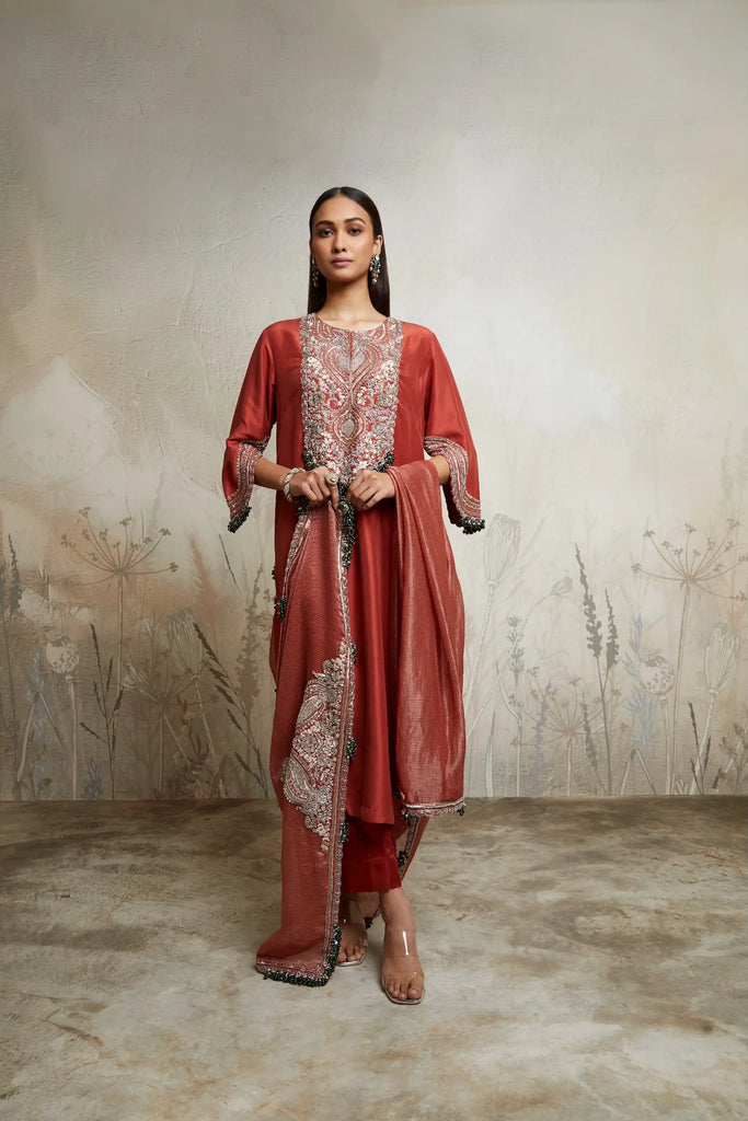 Maal work on Silk kurta with Zari dupatta and cotton satin pant