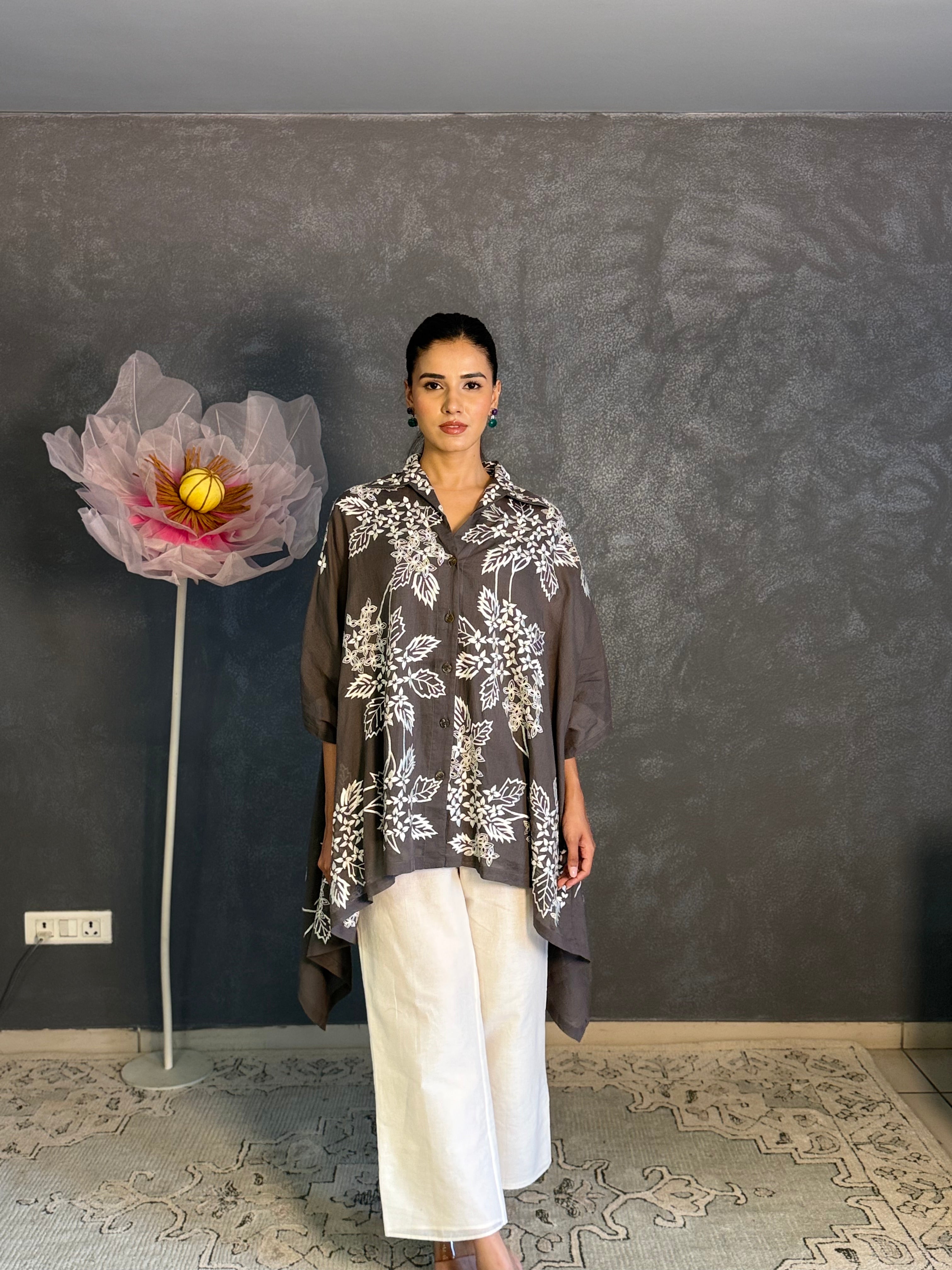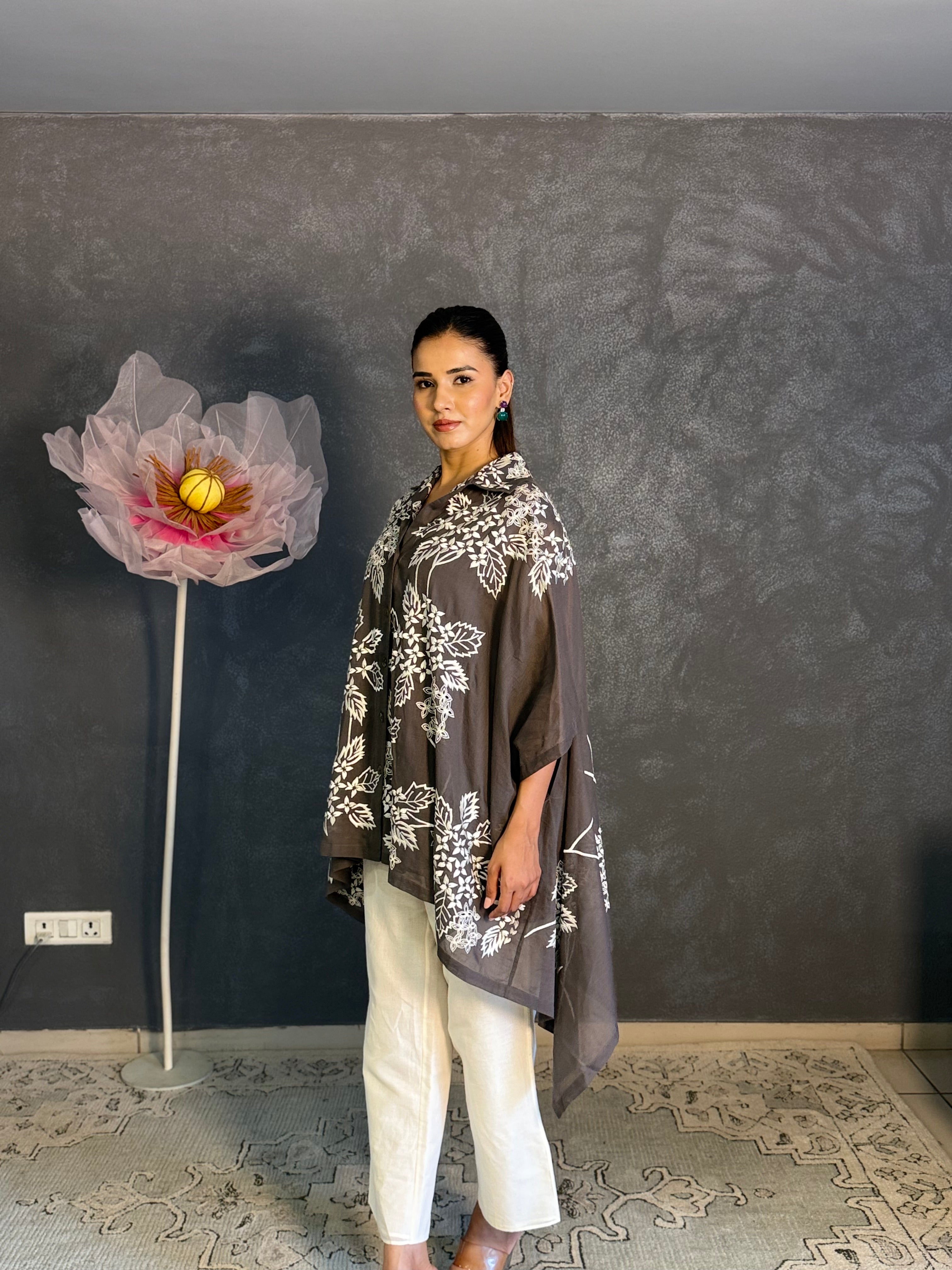 Charcoal Floral Asymmetric Shirt